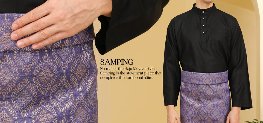 PRODUCT DETAILSWathiq Adult Samping Material: Songket - Intricate pattern with gold or silver threads. The metallic threads stand out against the background cloth to create a shimmering effect. No matter the Baju Melayu style, Samping is the statement piece that completes the traditional attire. The...