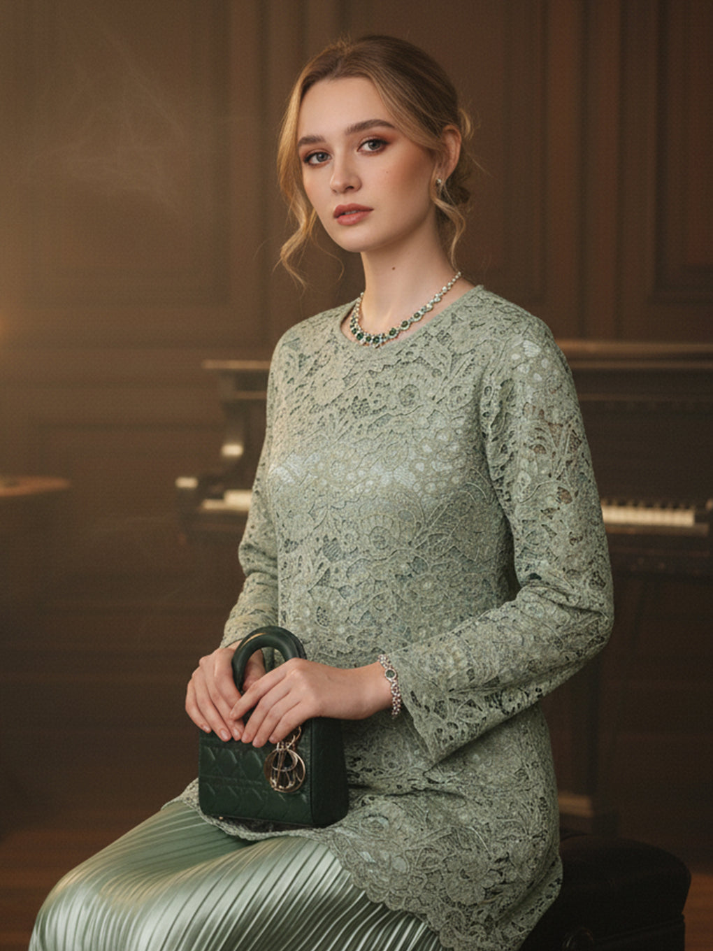 Skirt - Pleated satin material creates a beautiful drape that gracefully complements your figure.