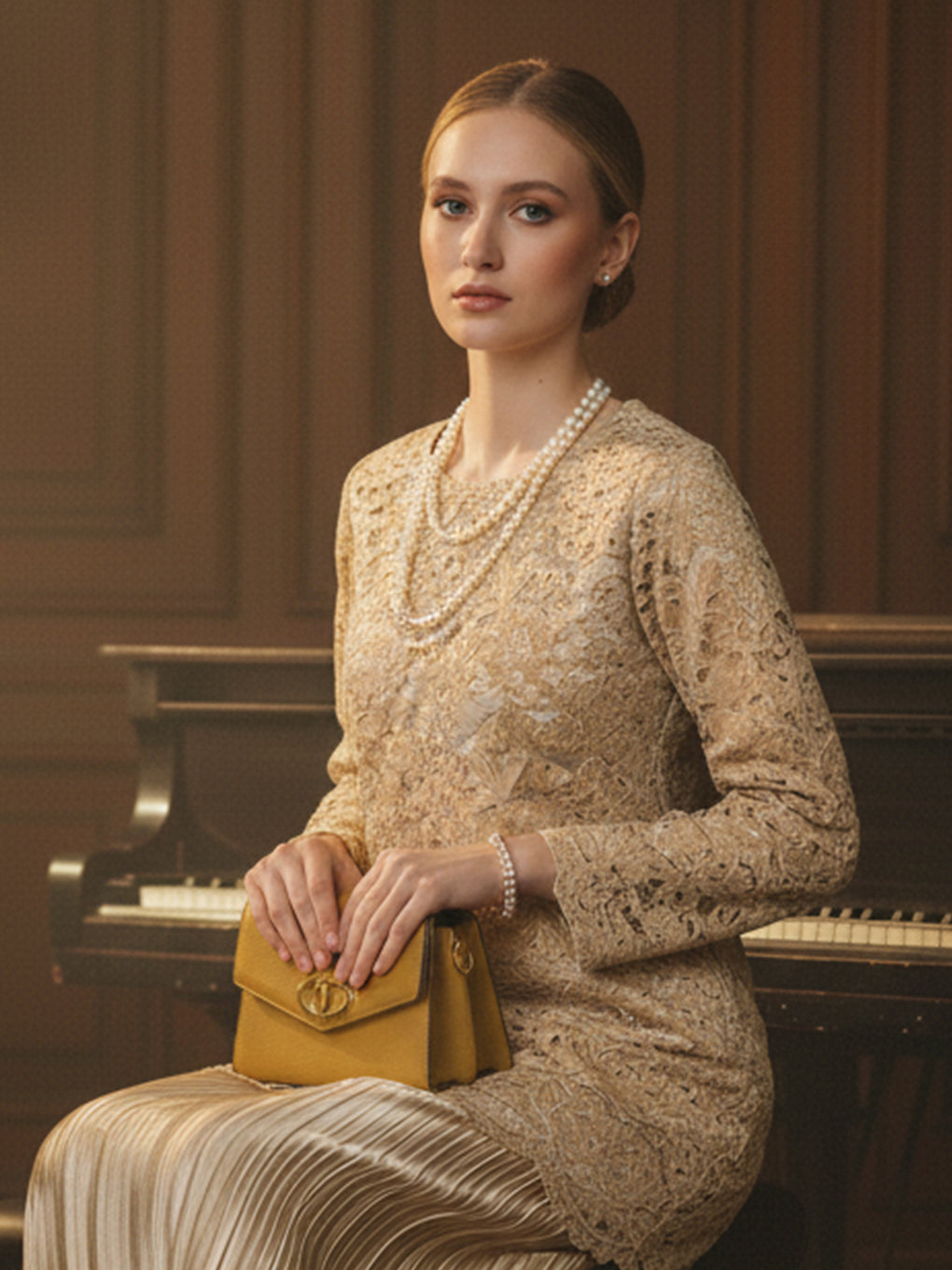 Skirt - Pleated satin material creates a beautiful drape that gracefully complements your figure.