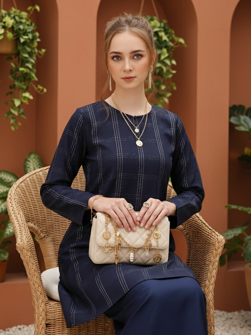 BAJU KURUNG PAHANG PESAK KALUNA (NAVY BLUE)