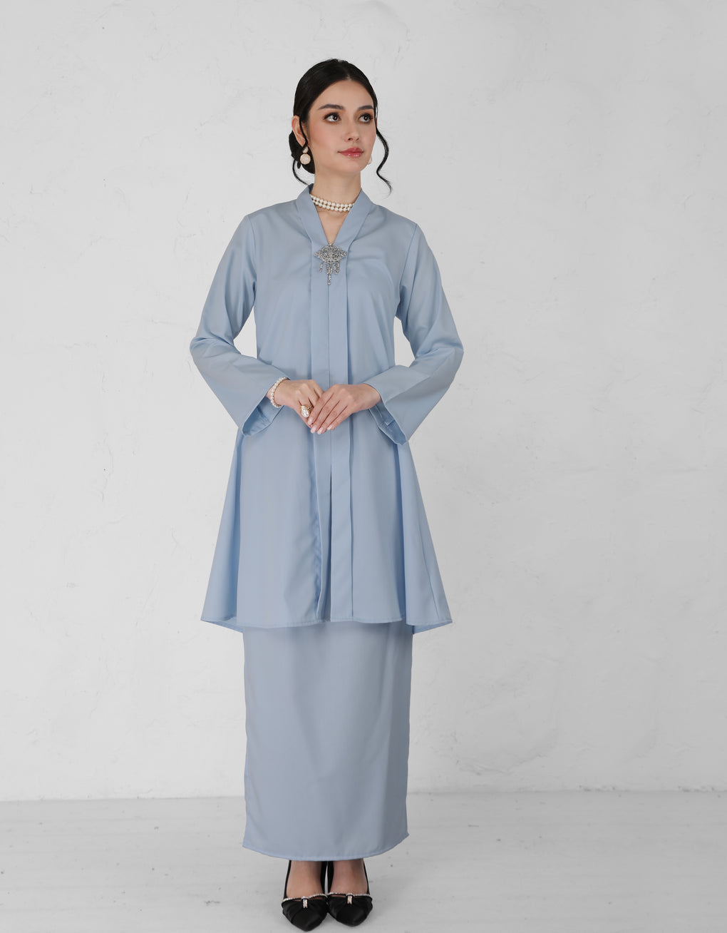 "Baju Kebarung Haura" blends timeless tradition with modern grace. Crafted from premium polycotton - Its flowing, long silhouette offers cultural authenticity and all-day comfort-perfectly for formal events or refined daily wear. This piece honors heritage while embracing today’s fashion sensibilities.