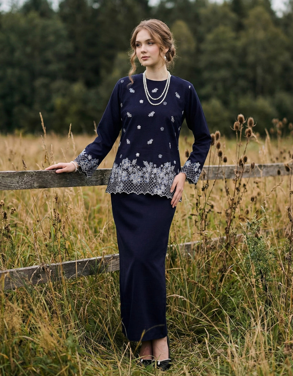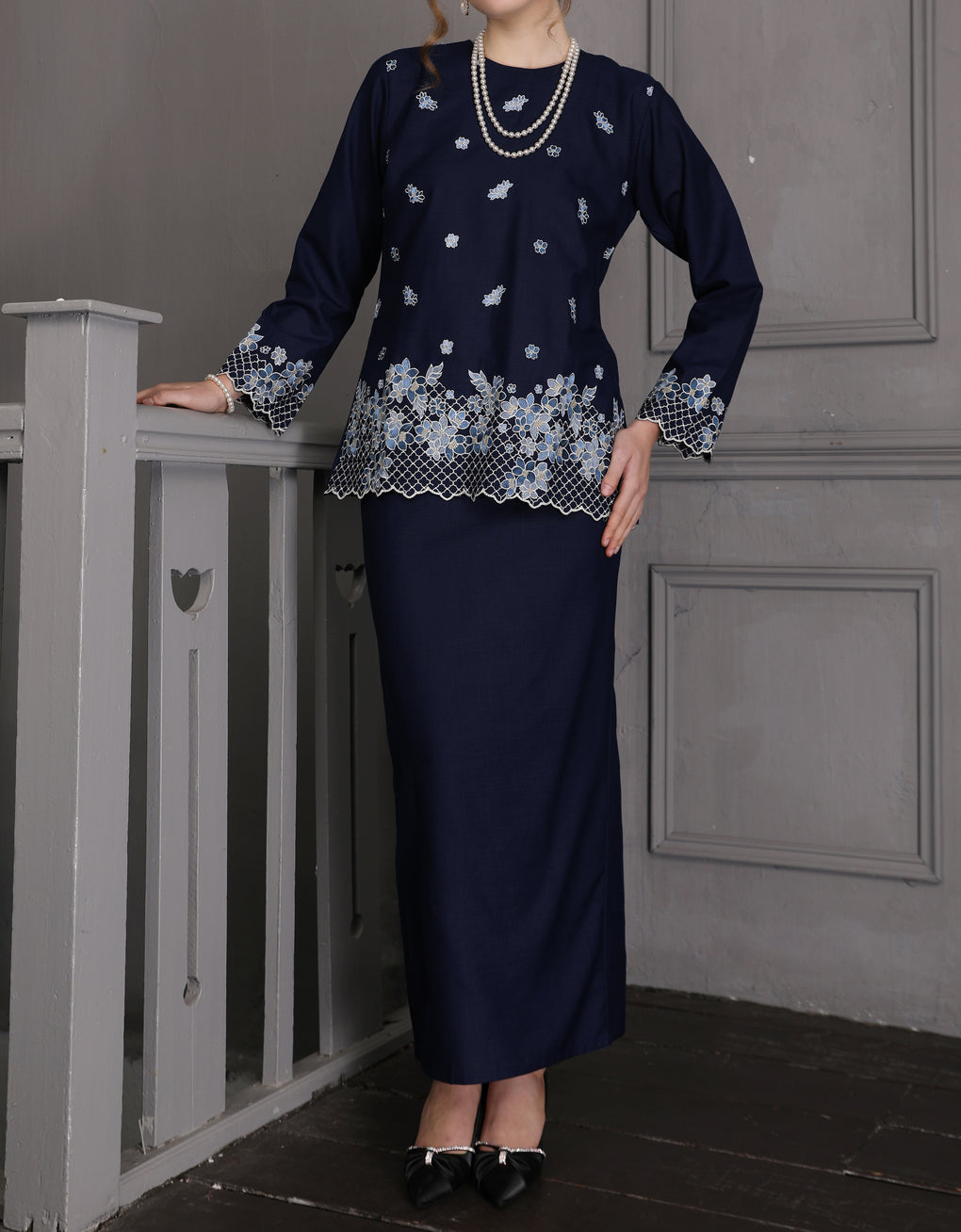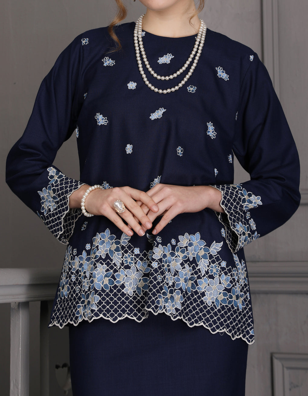 BAJU KURUNG KEDAH AVELINE (NAVY BLUE)