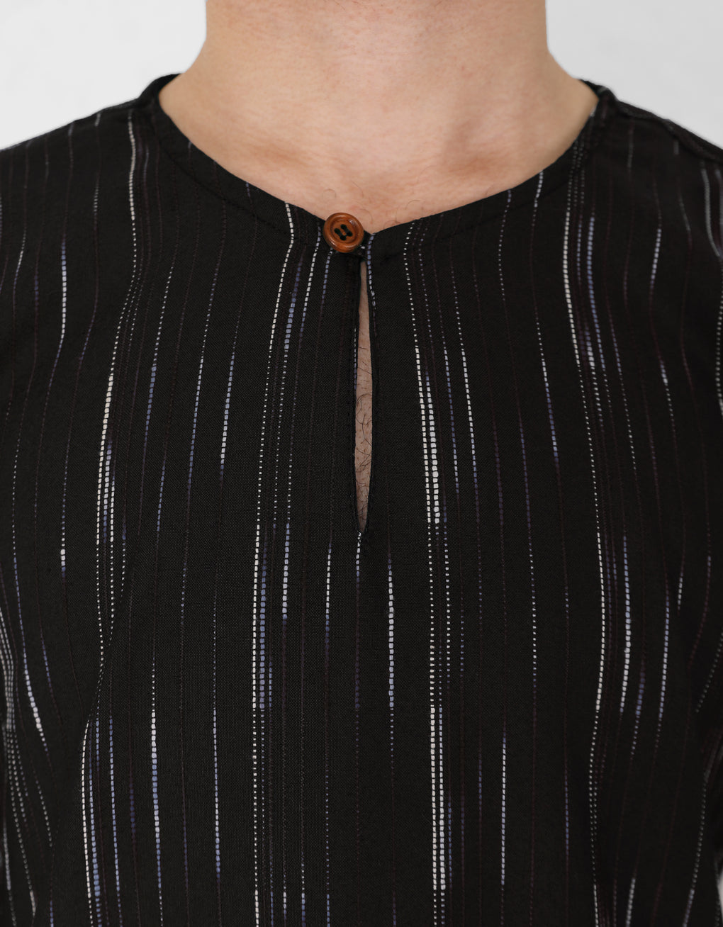Elevate your style with premium cotton regular fit round neck kurta. The matched coloured buttons and long sleeves add a touch of sophistication, while the side pockets provides functionality and fashion. Perfect for any occasion, this kurta effortlessly combines comfort and elegance.