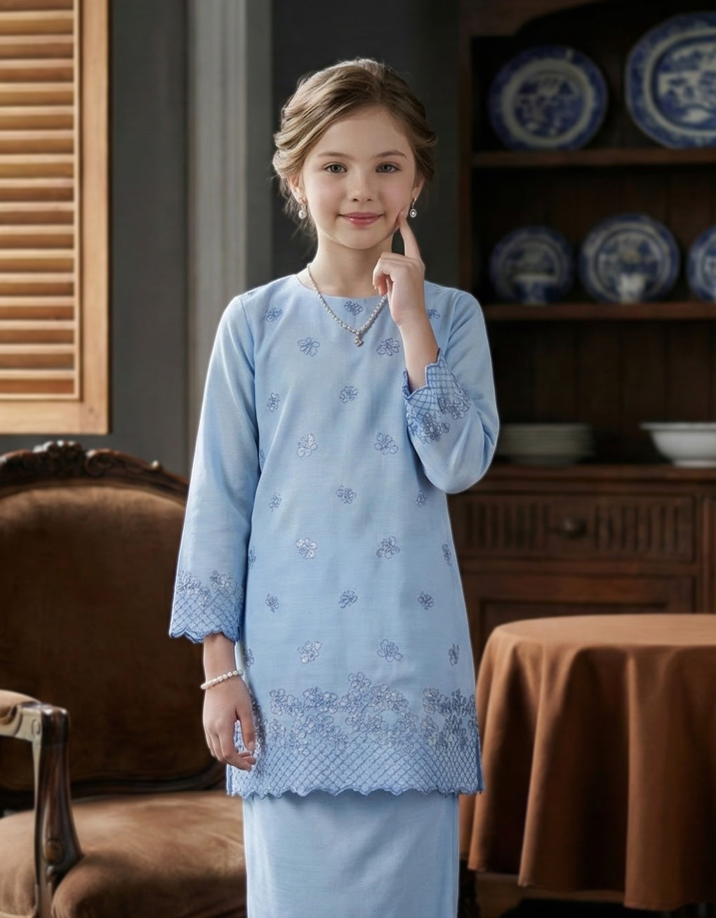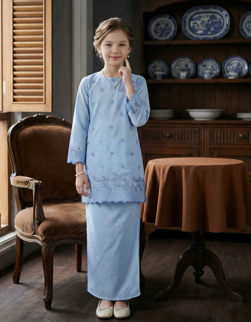 "Kids Baju Kurung Pahang Moden Lettie" blends tradition with a modern touch. Made from premium linen cotton with beautiful multicolor embroidery, it offers comfort and elegance in a long, graceful cut. Perfect for formal events or stylish everyday wear, it’s a timeless piece for those who appreciate both heritage and contemporary style.