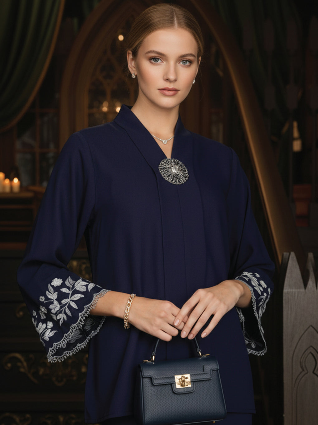 Material: Premium Italian Crepe - Elevate your style with our BAJU KEBAYA LETIZIA. The intricate stitching adds elegance to this timeless Malay outfit, perfect for any special occasion. Embrace the refined and graceful look that this classic Malay attire.