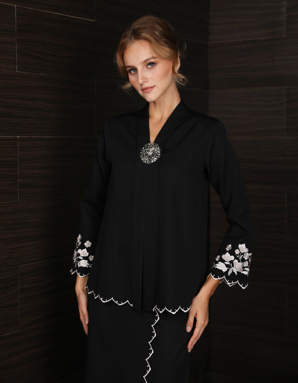 Crafted from premium Italian crepe and featuring intricate embroidery, this baju kebaya offers a form fitting silhouette with a slight stretch for comfort. Its soft touch to the skin makes it breathable and luxurious.