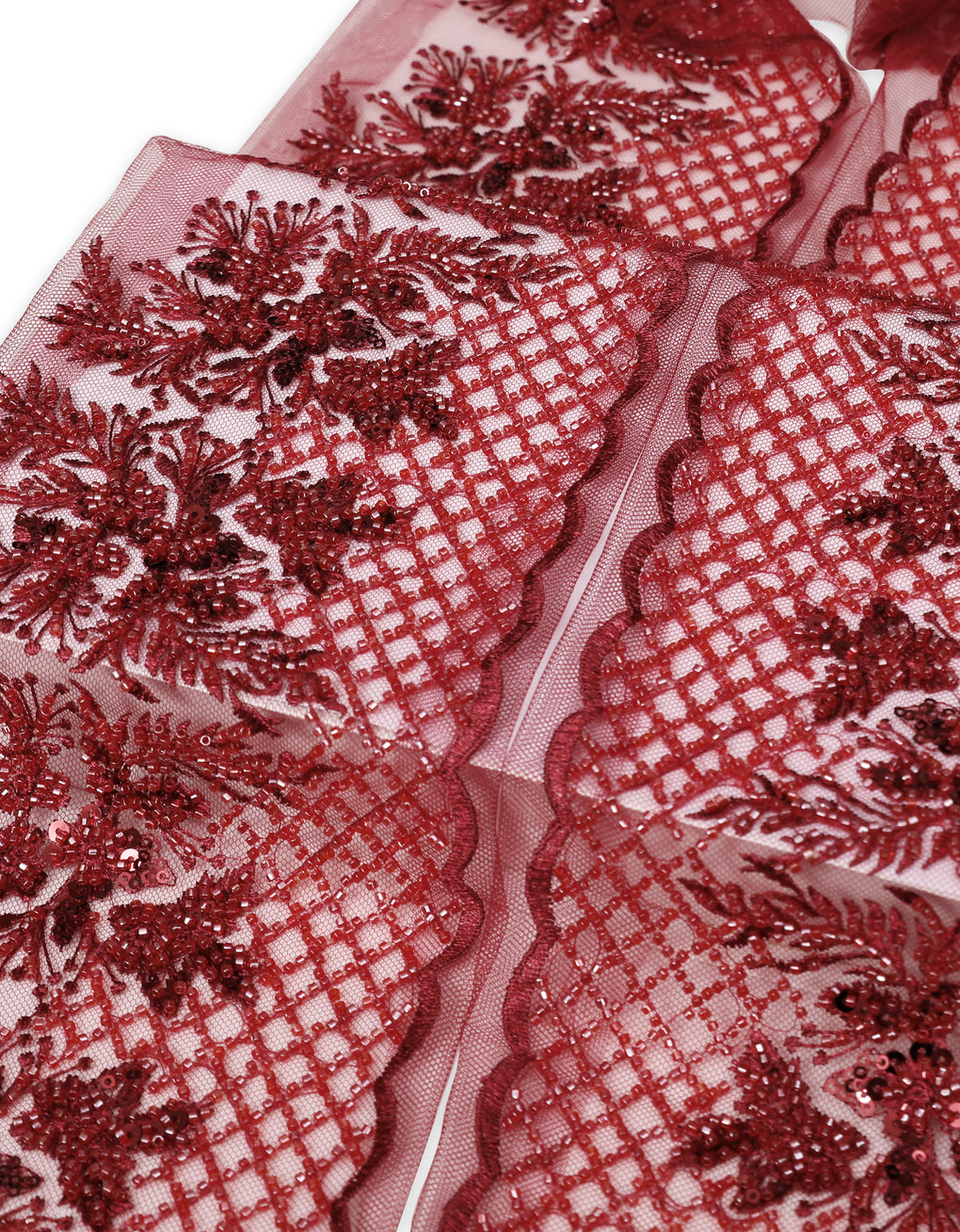 Aurora Blossom Beaded Border Lace Mix and Match - (Maroon) + Satin (Maroon)