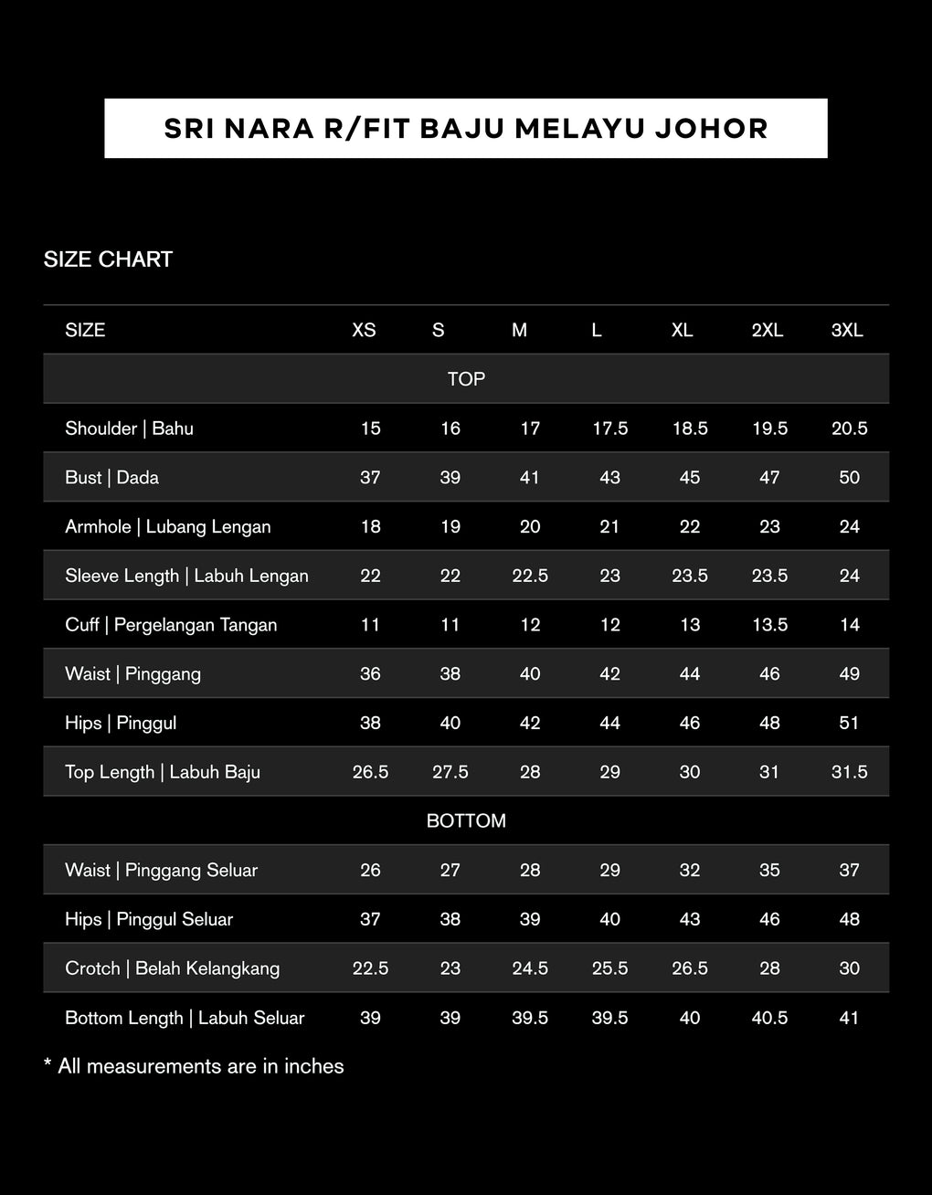 Material: Paloma Washable Silk version of the traditional Johor attire. Made with expert craftsmanship, this Paloma silk fabric ensures durability and comfort, perfect for formal occasions.