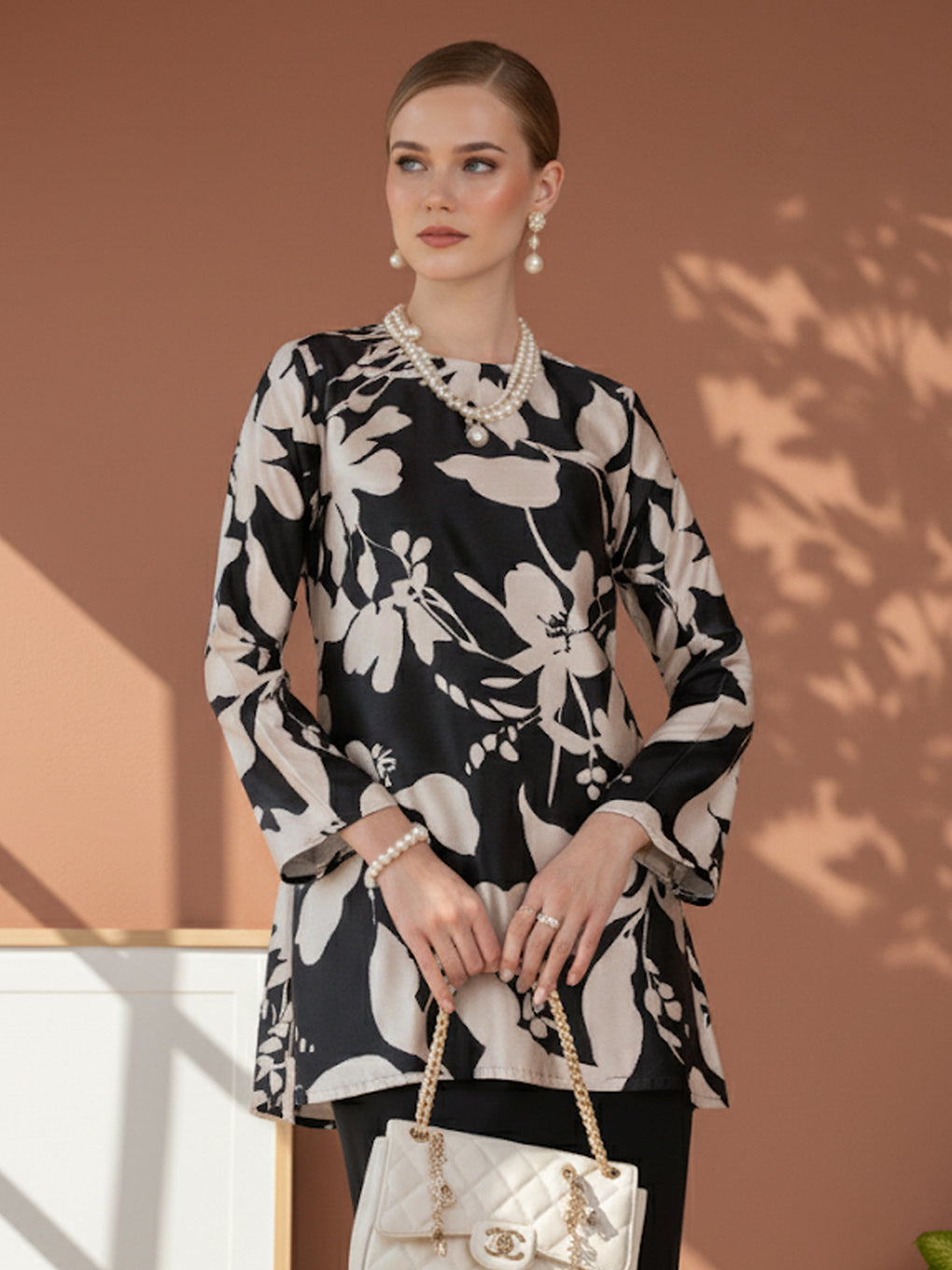 BAJU KURUNG PAHANG MODEN DELANEY (BLACK BEIGE)