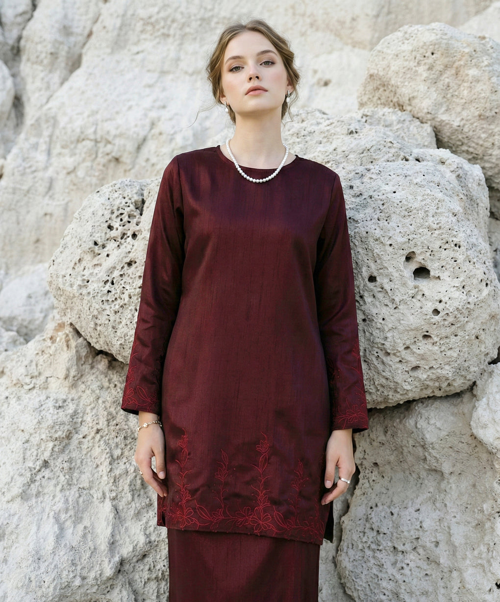 BAJU KURUNG PAHANG MODEN FIANNA (MAROON)