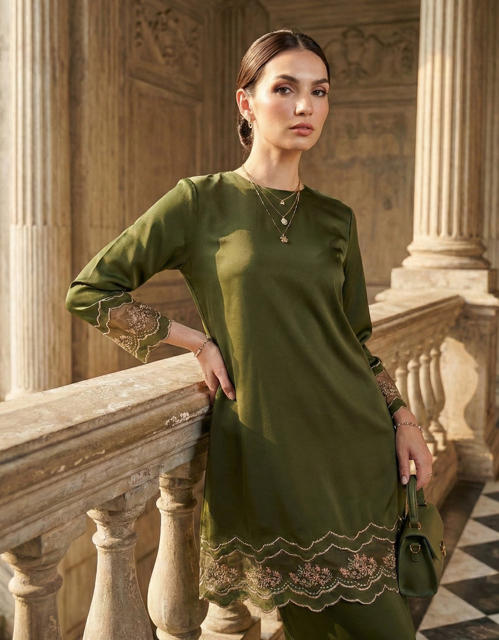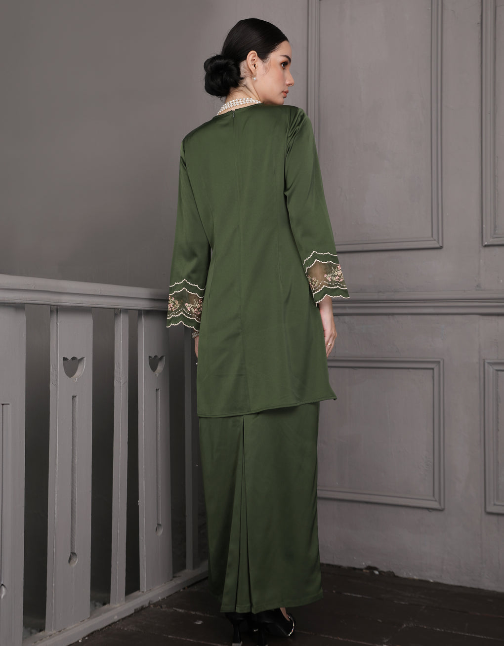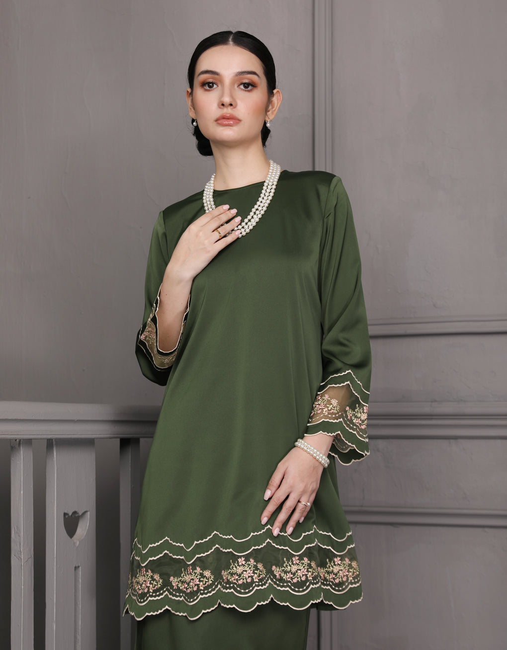 'Baju Kurung Pahang Moden Everlee' blends tradition with a modern touch. Crafted from luxurious Italian Silky Satin and adorned with multi-color embroidery, it offers both elegance and comfort in a long, flattering silhouette. A timeless choice for formal events or refined everyday wear.