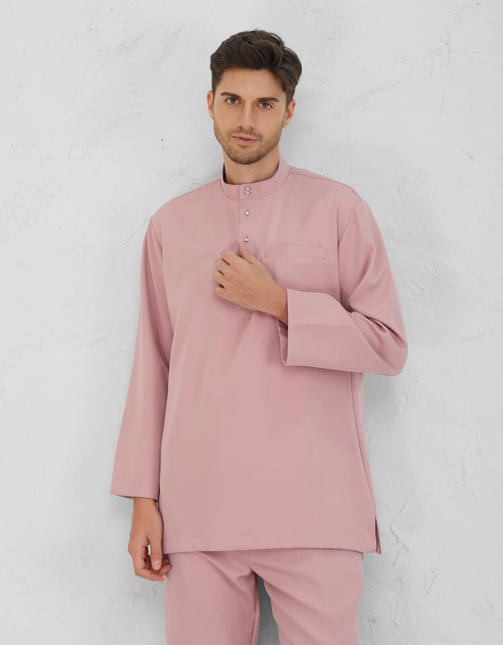 A Modern take on the classic Baju Melayu Cekak Musang - clean lines, tailored fit, and refined details for a sleek traditional look. Perfect for Raya, Wedding or formal events. This timeless piece blends heritage with cotemporary style.