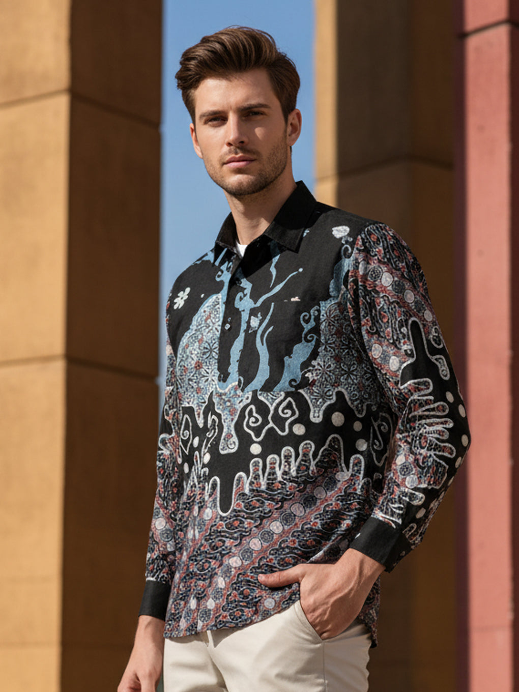Regular fit collar shirt with long sleeves and button fastening on the front.