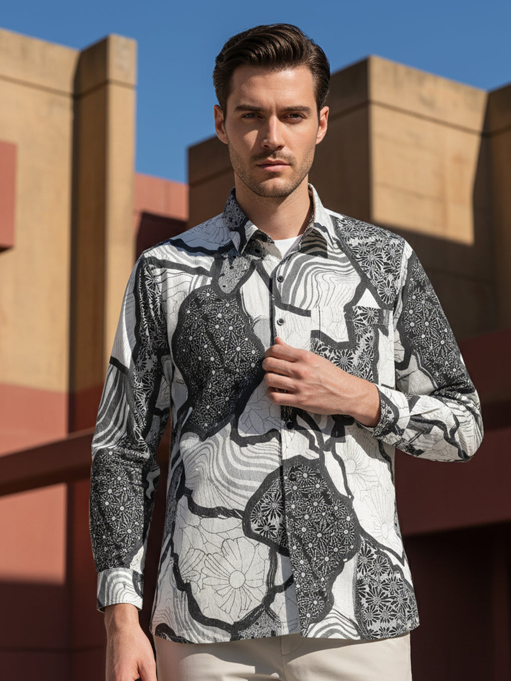 Material: Printed Jacquard Crepe - Experience the luxurious comfort of soft and breathable fabric. The lightweight and flowy material will keep you feeling comfortable and stylish all day long.