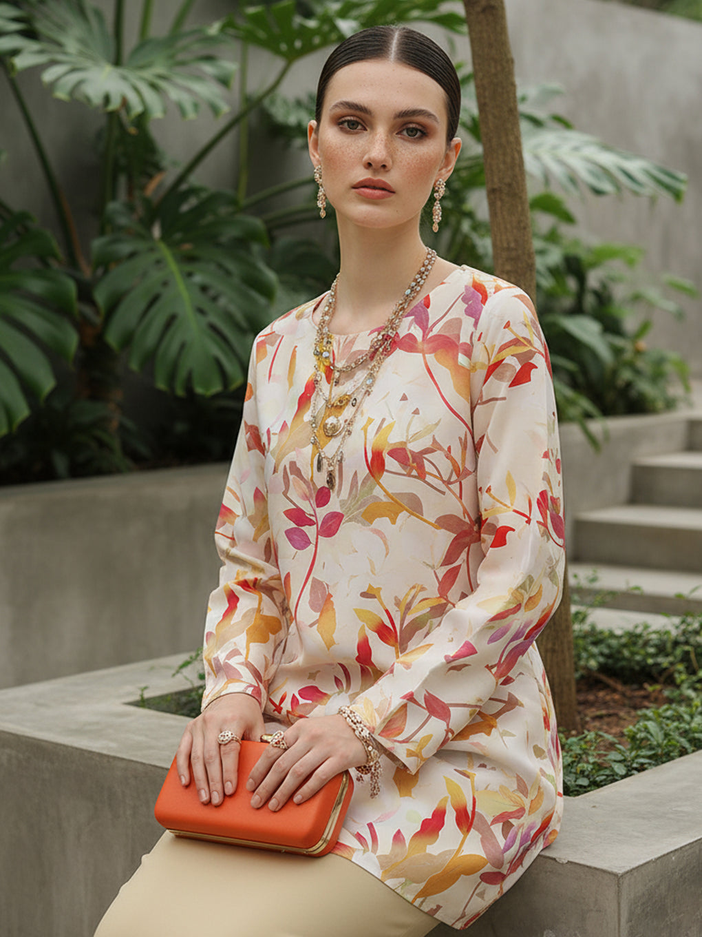 Material: Delta Crepe - A highly breathable and wrinkle resistance fabric with unique prints for the top, paired with plain skirt to complete the look.