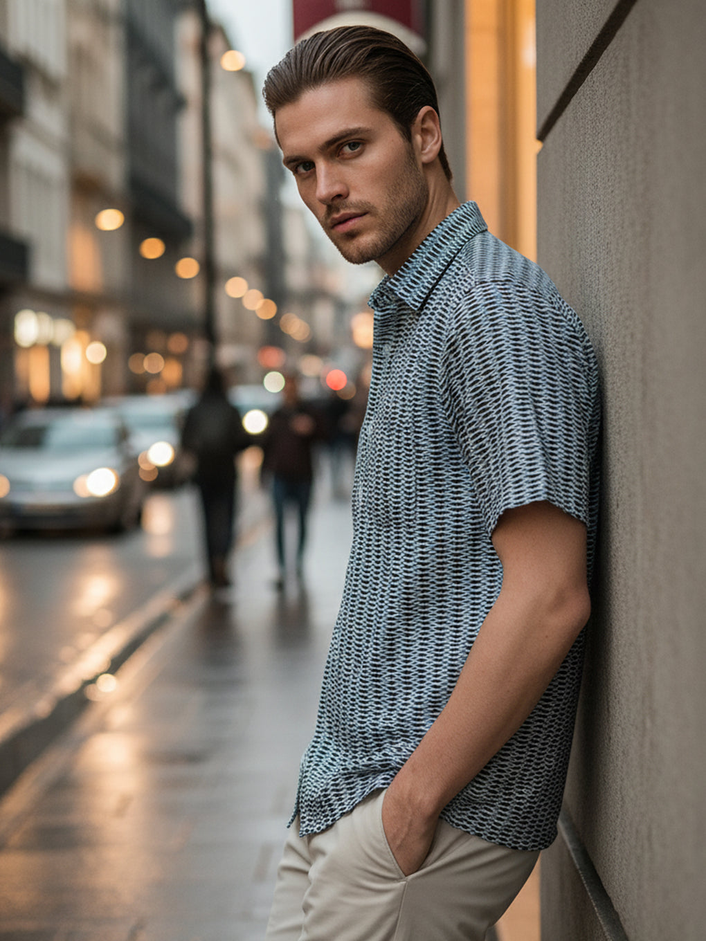 Regular fit collar shirt with short sleeves and button fastening on the front