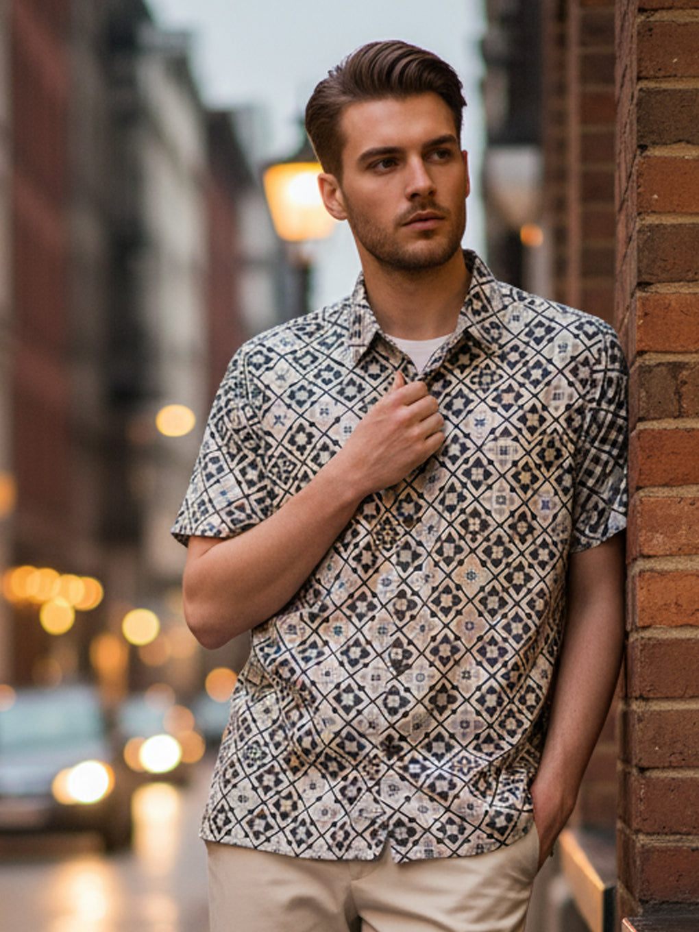 ✿ Regular fit collar shirt with short sleeves and button fastening on the front