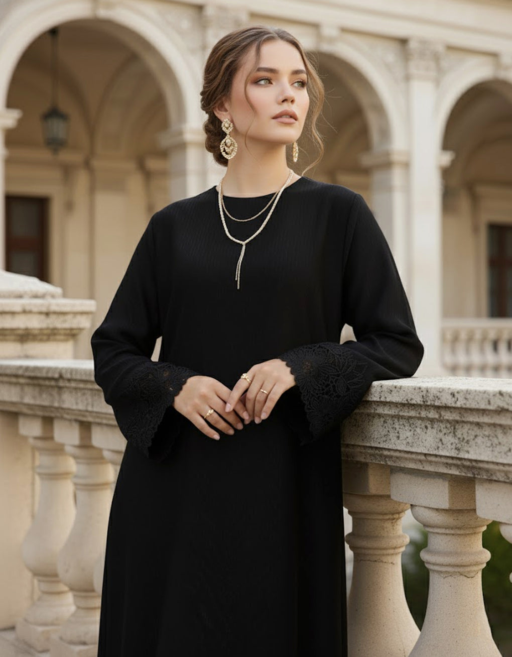 Material: Mora Fabric - High quality fabric with jacquard effect on the surface. Its border lace detailing on the hands adds a touch of sophistication.