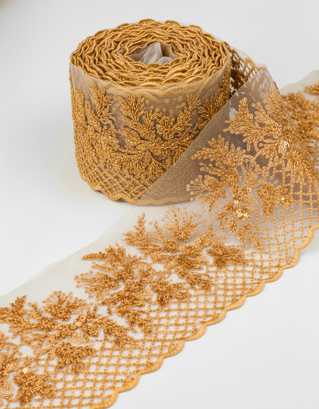 Aurora Blossom Beaded Border Lace Mix and Match - (Gold) + Satin (Yellow)