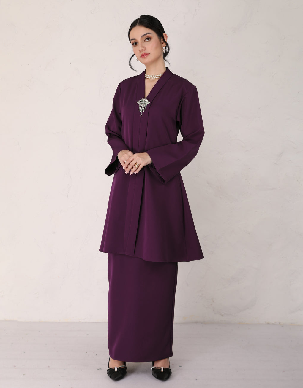 "Baju Kebarung Hawa" blends timeless tradition with modern grace. Crafted from premium polycotton - Its flowing, long silhouette offers cultural authenticity and all-day comfort-perfectly for formal events or refined daily wear. This piece honors heritage while embracing today’s fashion sensibilities.