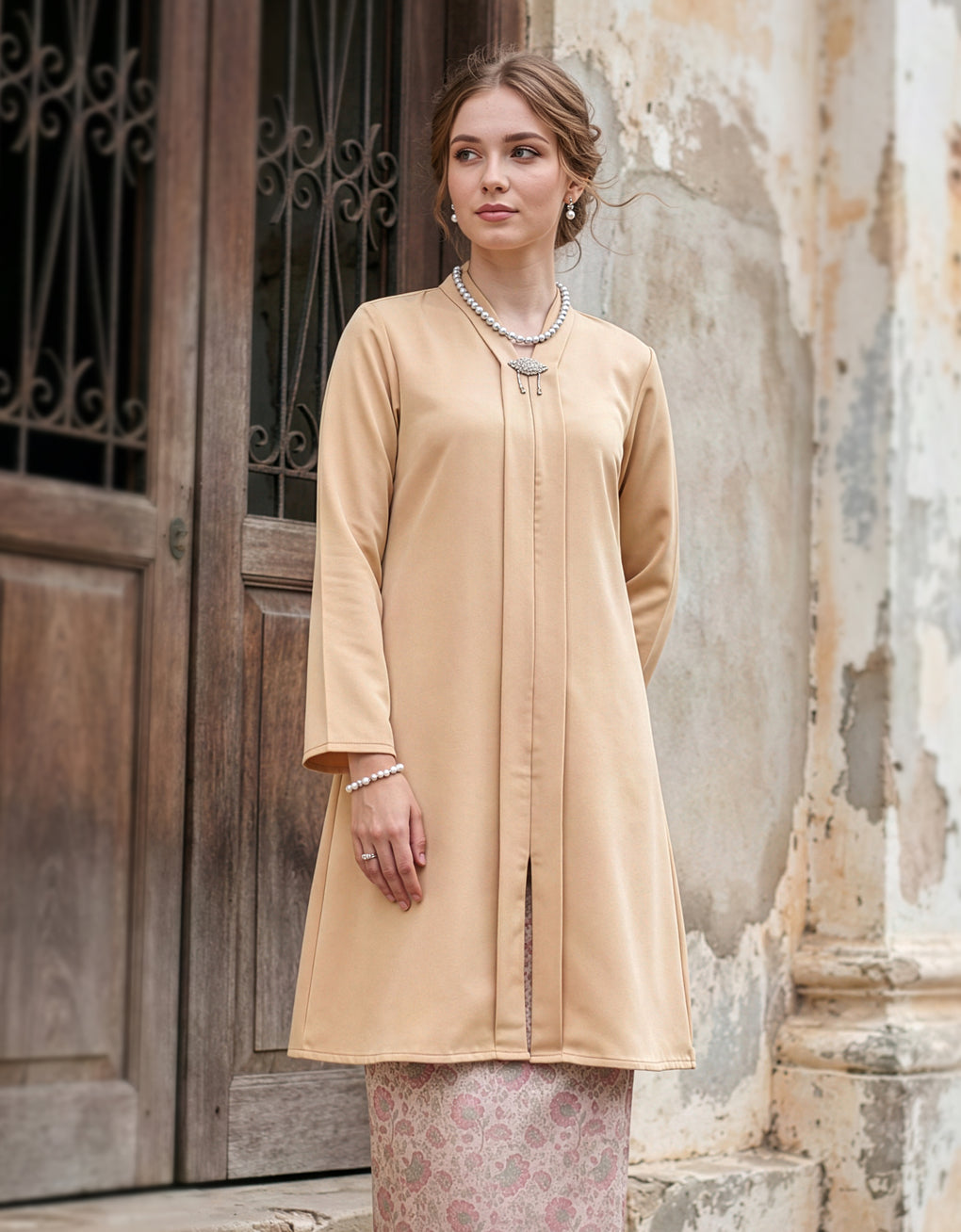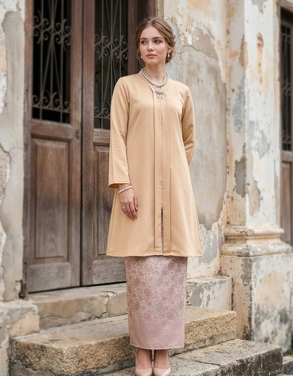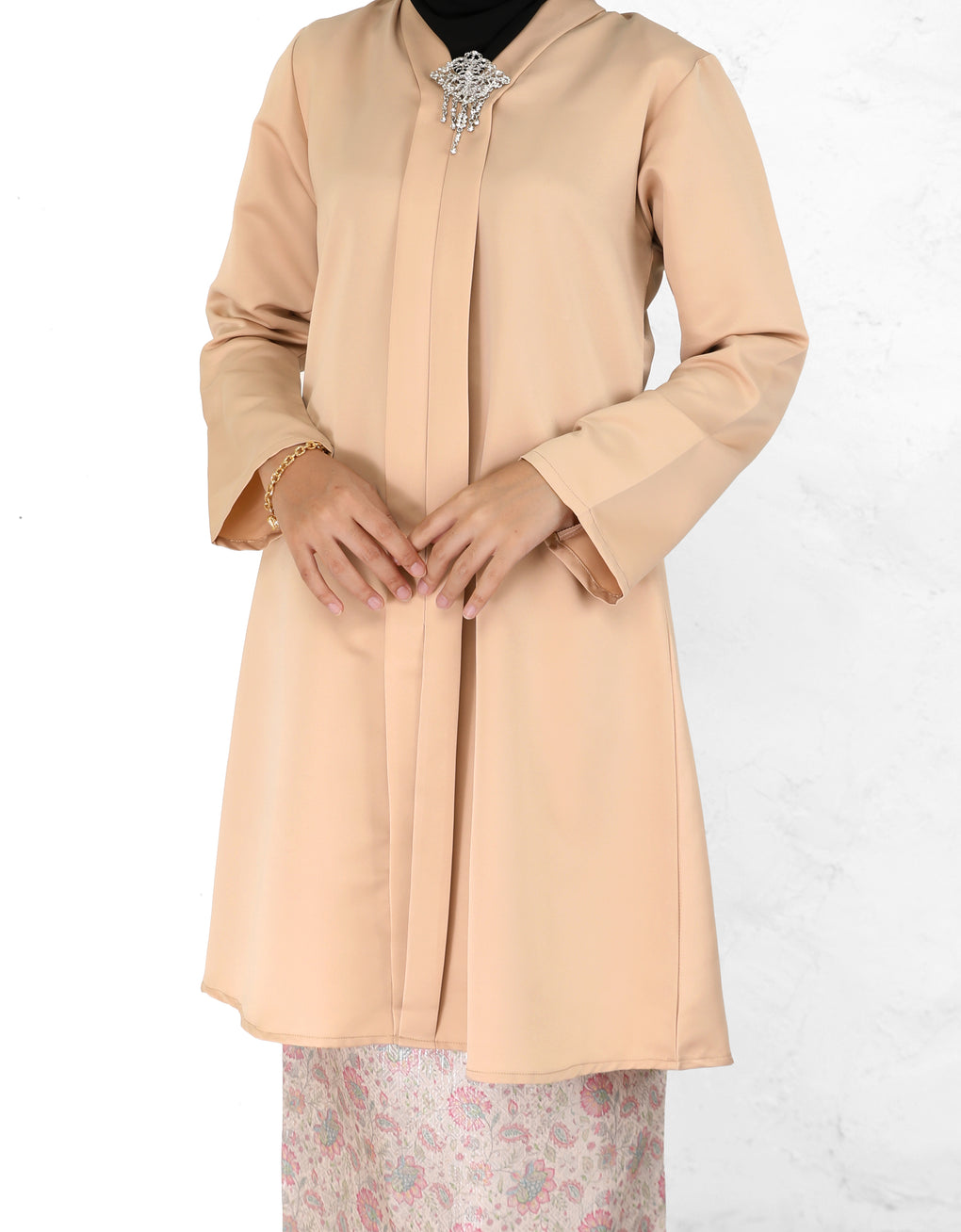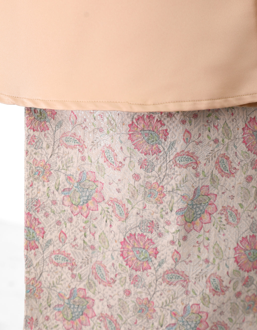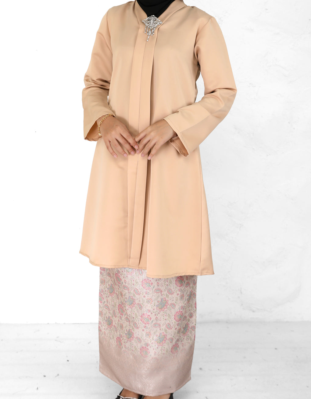 "Baju Kebaya Carissa" blends timeless tradition with modern grace. Top Crafted from Marion Pearl Skin and skirt from Sparkle Jacquard. Its flowing, long silhouette offers cultural authenticity and all-day comfort-perfectly for formal events or refined daily wear. This piece honors heritage while embracing today’s fashion sensibilities.