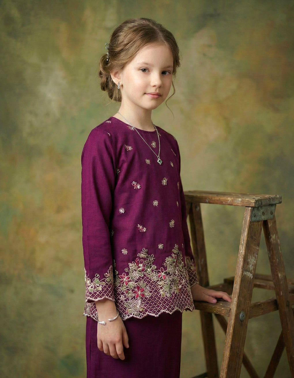 KIDS BAJU KURUNG KEDAH AVELINE (BURGUNDY)