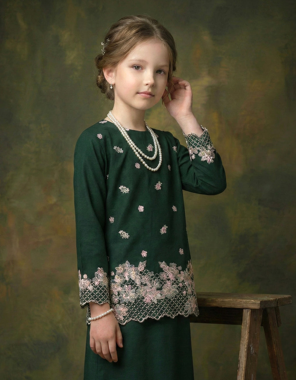 KIDS BAJU KURUNG KEDAH AVELINE (EMERALD GREEN)