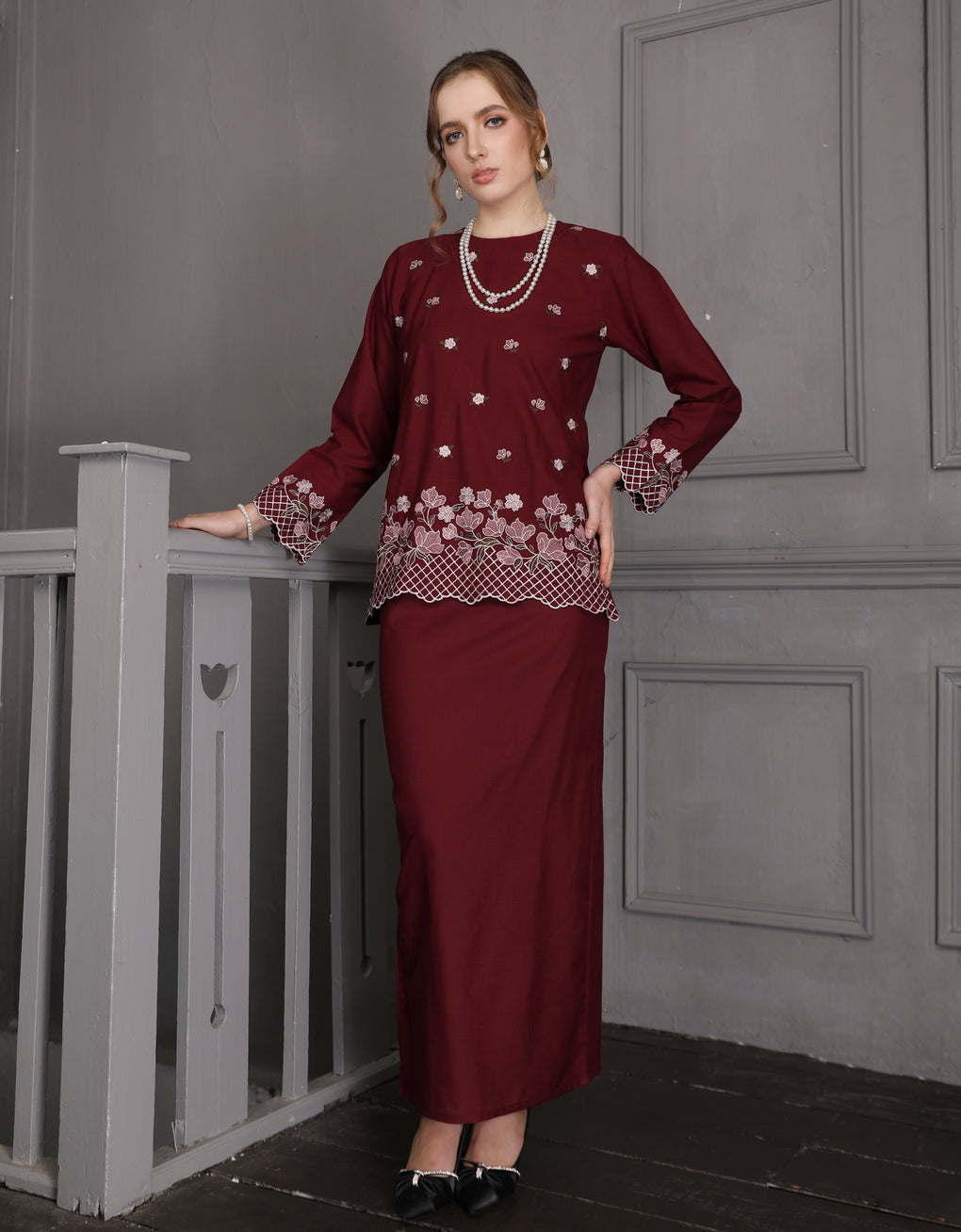 BAJU KURUNG KEDAH THALIA (MAROON)