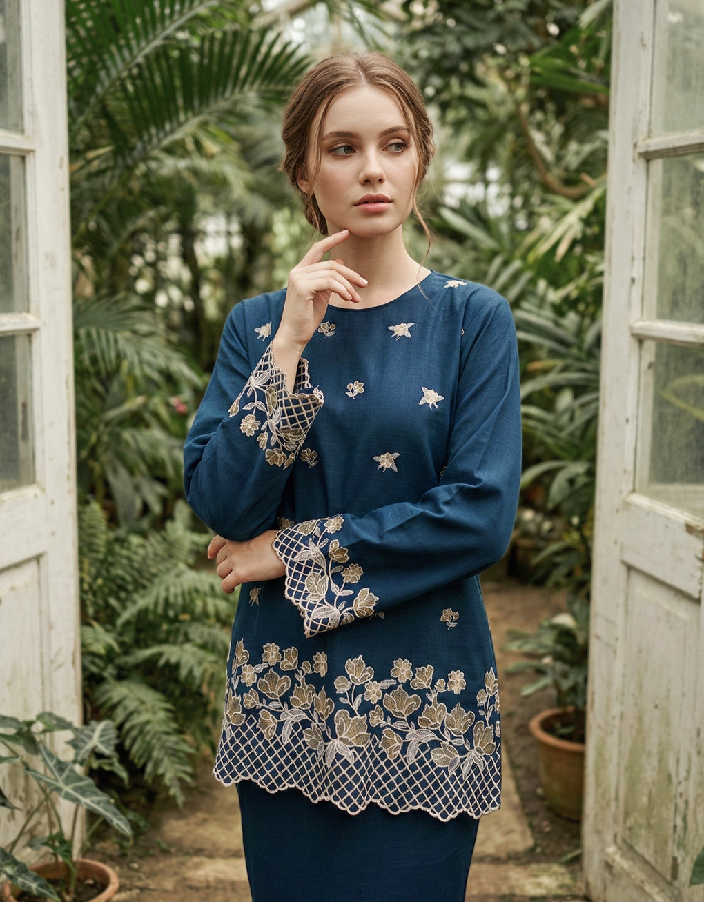 "Baju Kurung Kedah Thalia" blends tradition with a modern touch. Made from premium linen cotton with beautiful multicolor embroidery, it offers comfort and elegance in a long, graceful cut. Perfect for formal events or stylish everyday wear, it’s a timeless piece for those who appreciate both heritage and contemporary style.