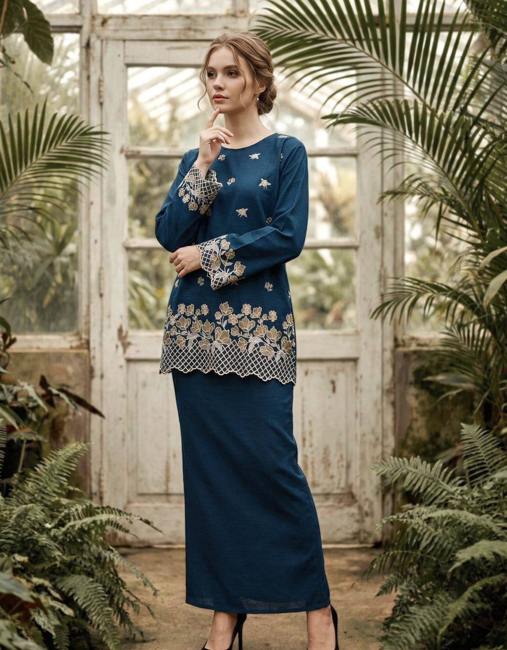 BAJU KURUNG KEDAH THALIA (TEAL BLUE)
