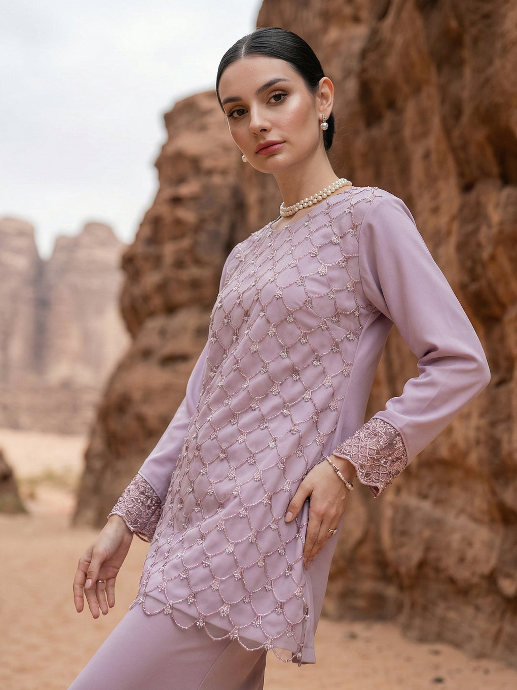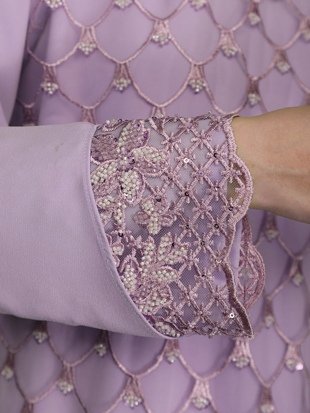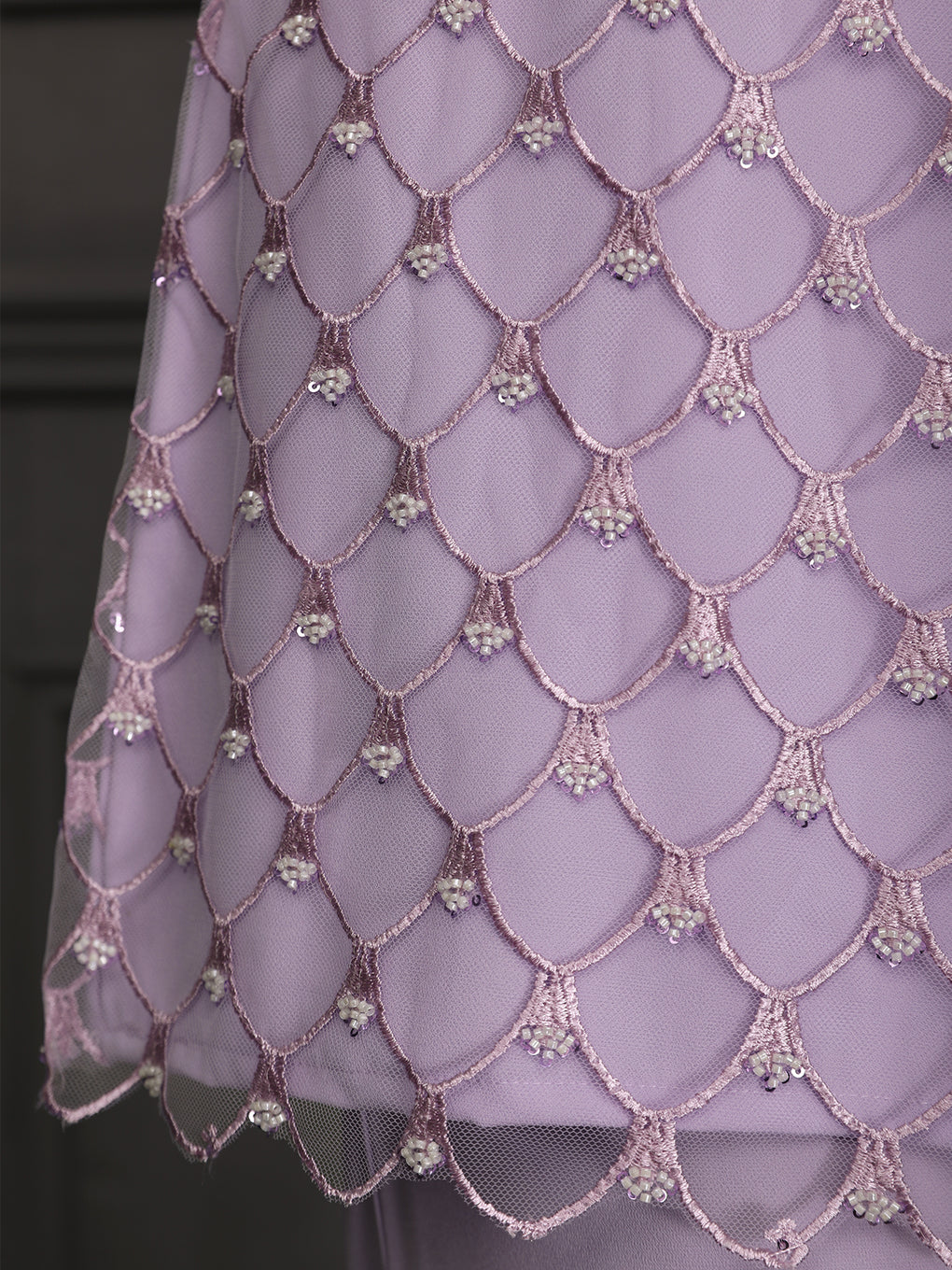 Baju Kurung Moden Idalia Luxurious and exclusive beaded lace delicately sewn for a rich and stunning look. The interlining are made of soft hand-feel jojo crepe fabric.