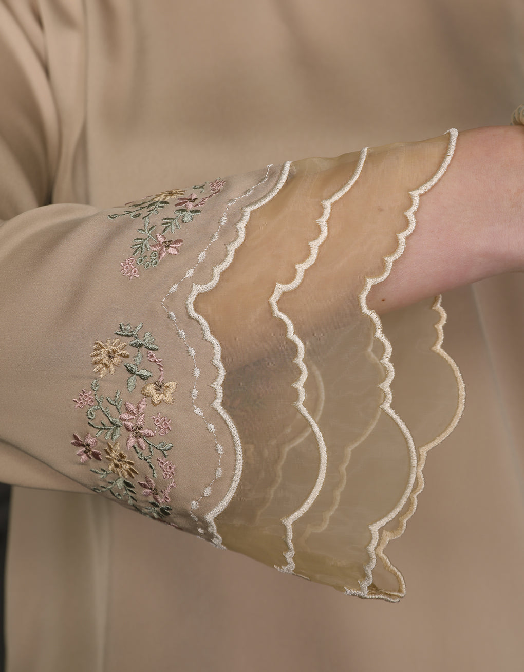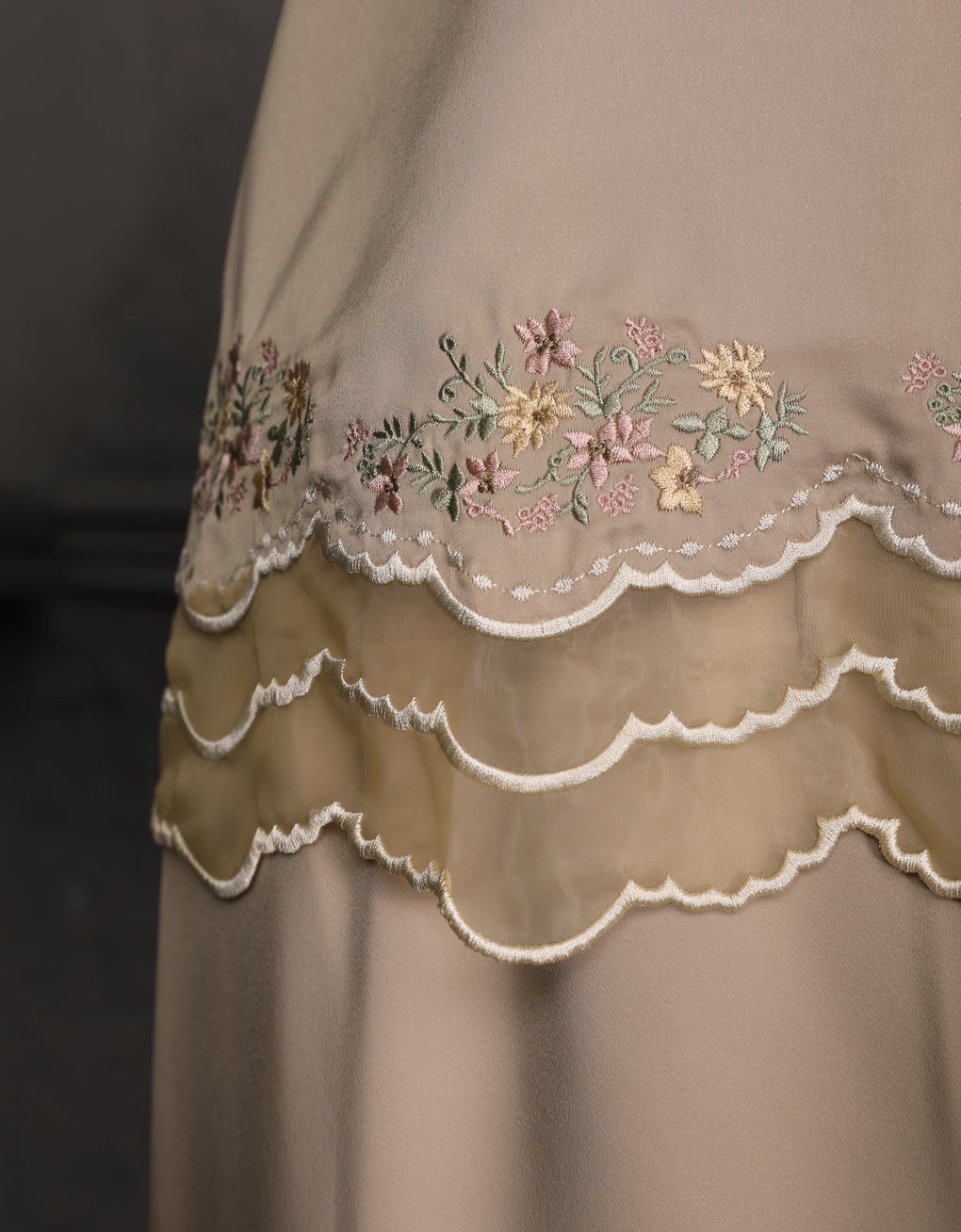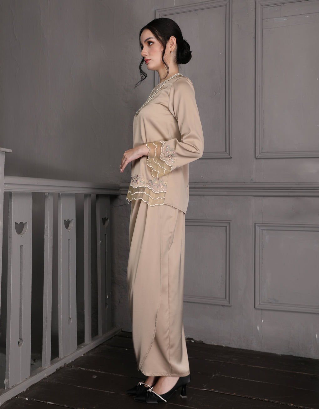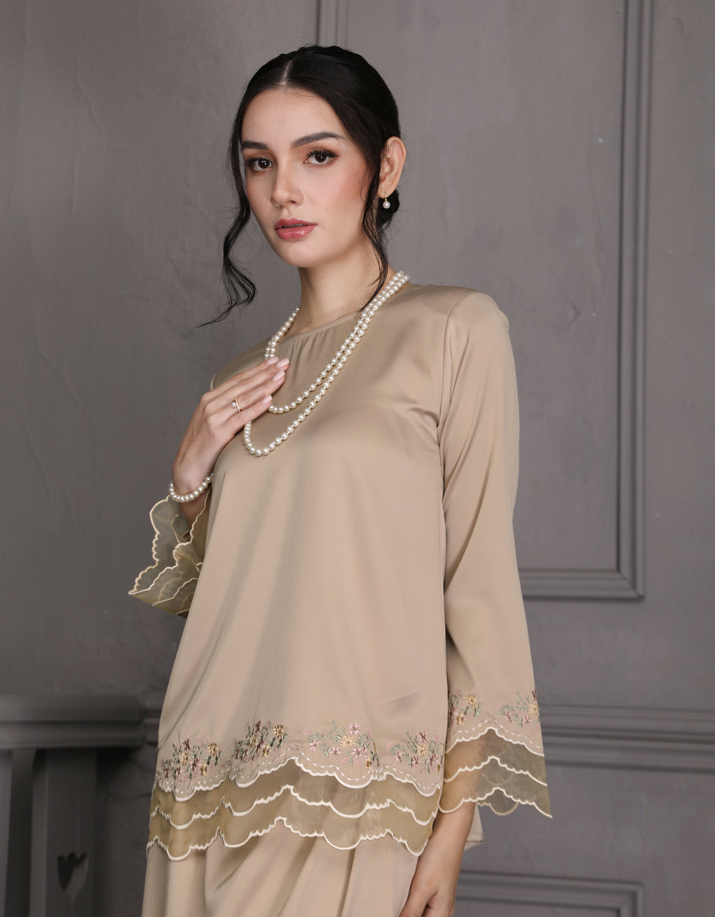 'Baju Kurung Moden Harriet’ combines classic charm with modern elegance. Made from silky Italian satin and detailed with fine multicolor embroidery on the sleeves and hem, it looks stunning, luxurious, and feminine — perfect for formal events or graceful daily wear.