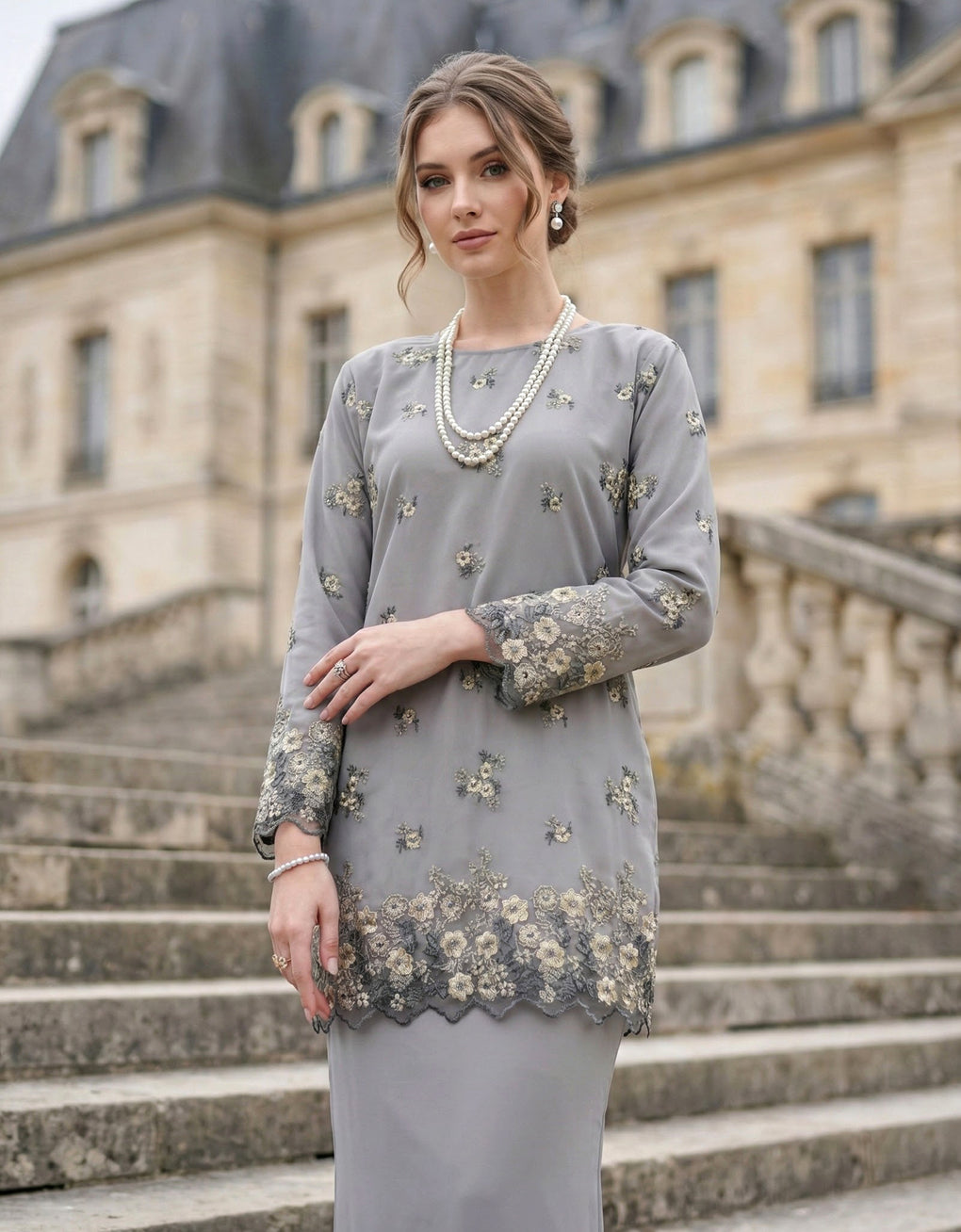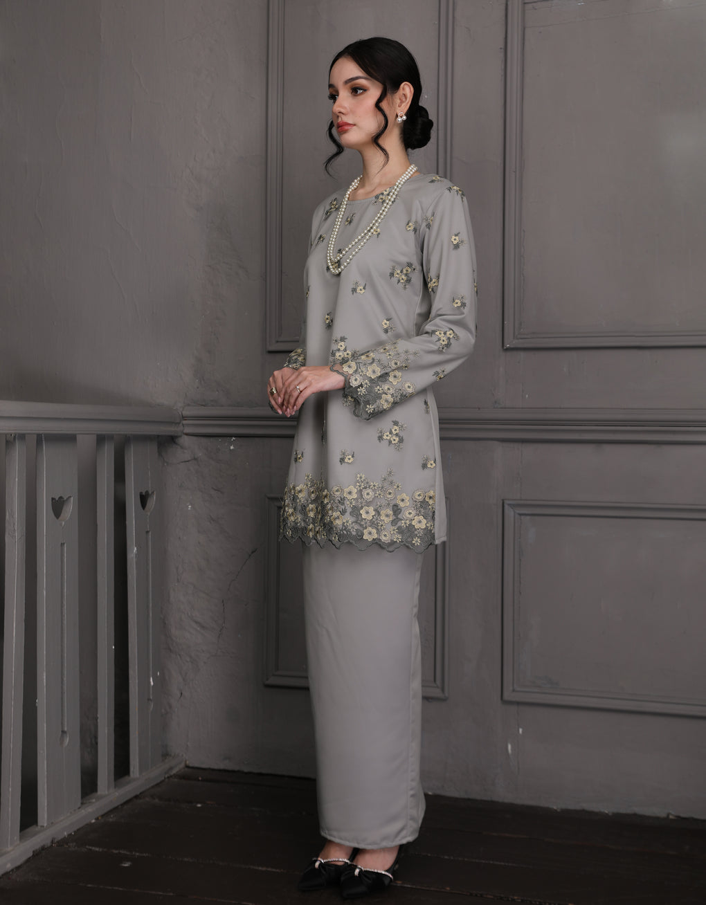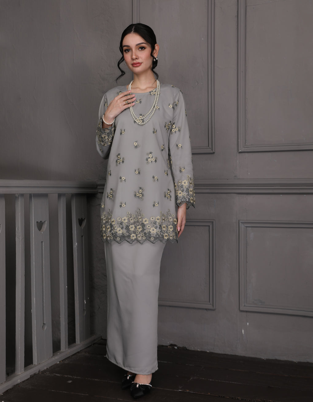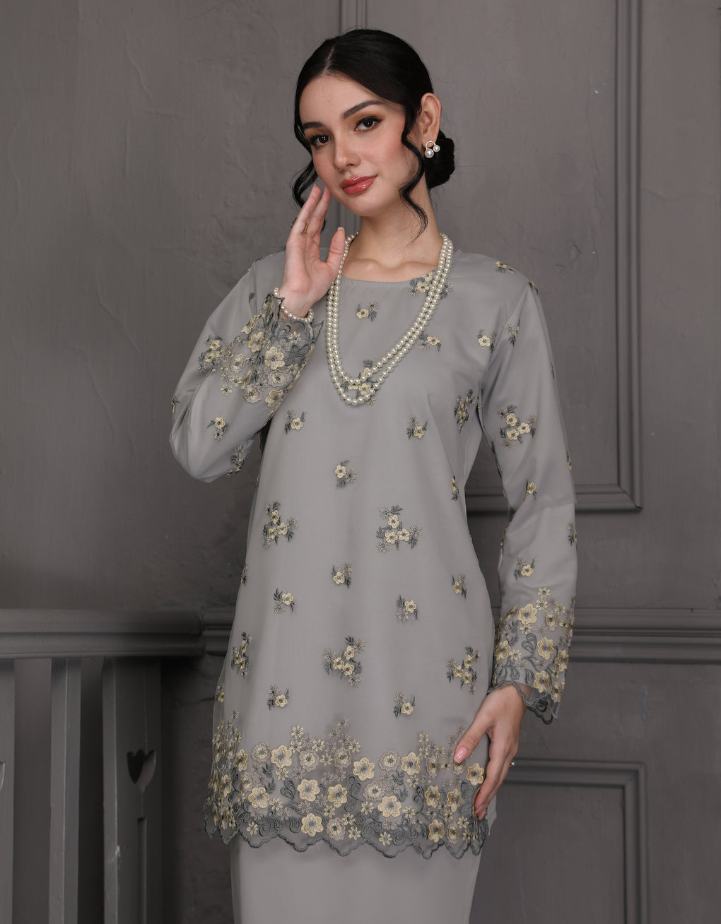 BAJU KURUNG MODEN KAMILA (SILVER GREY)