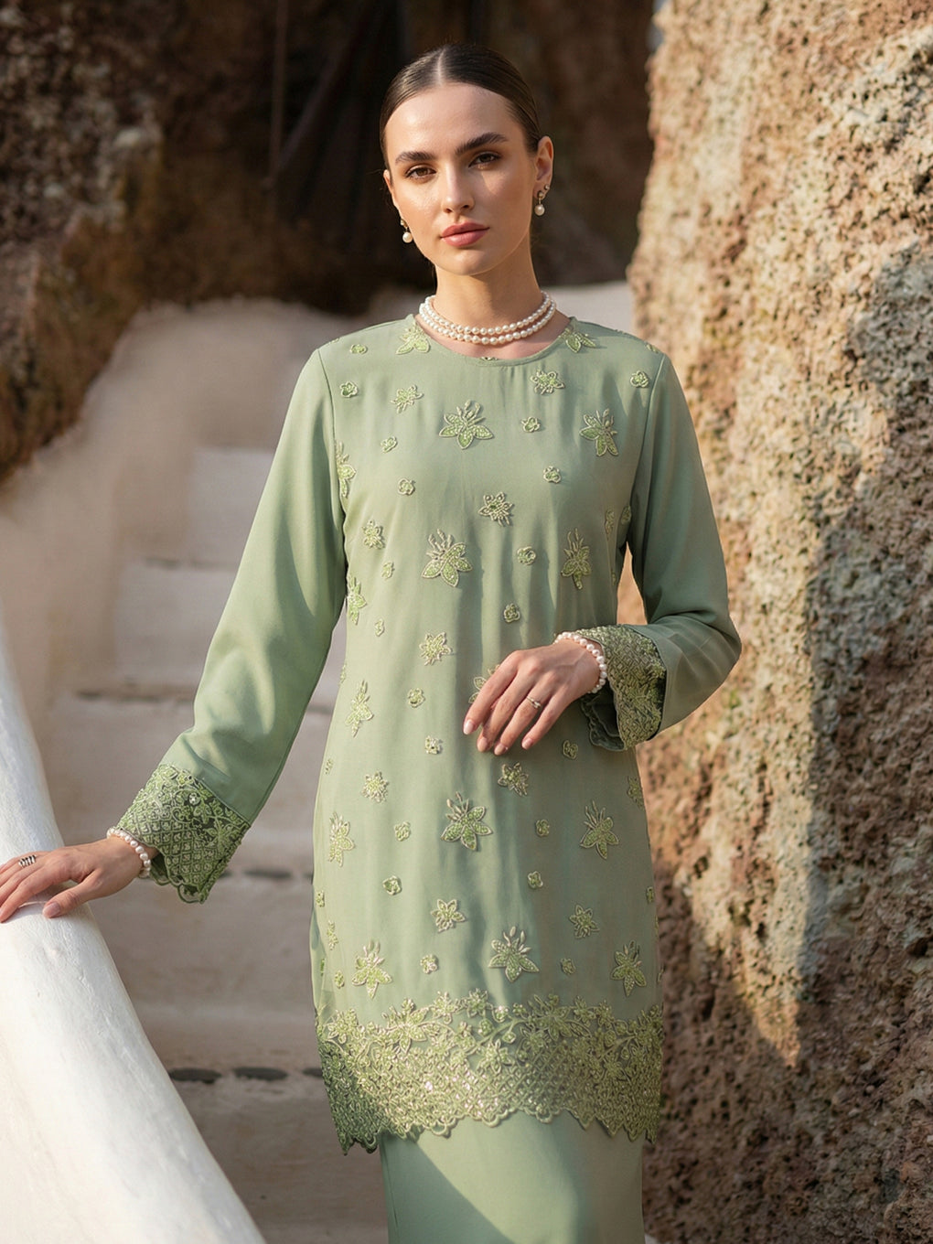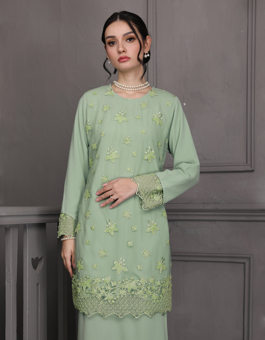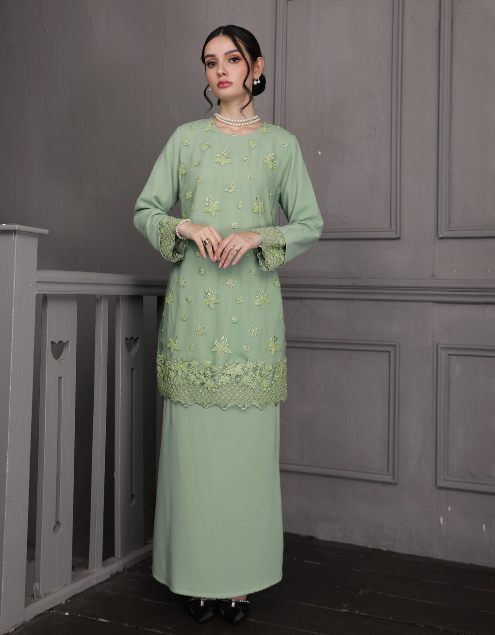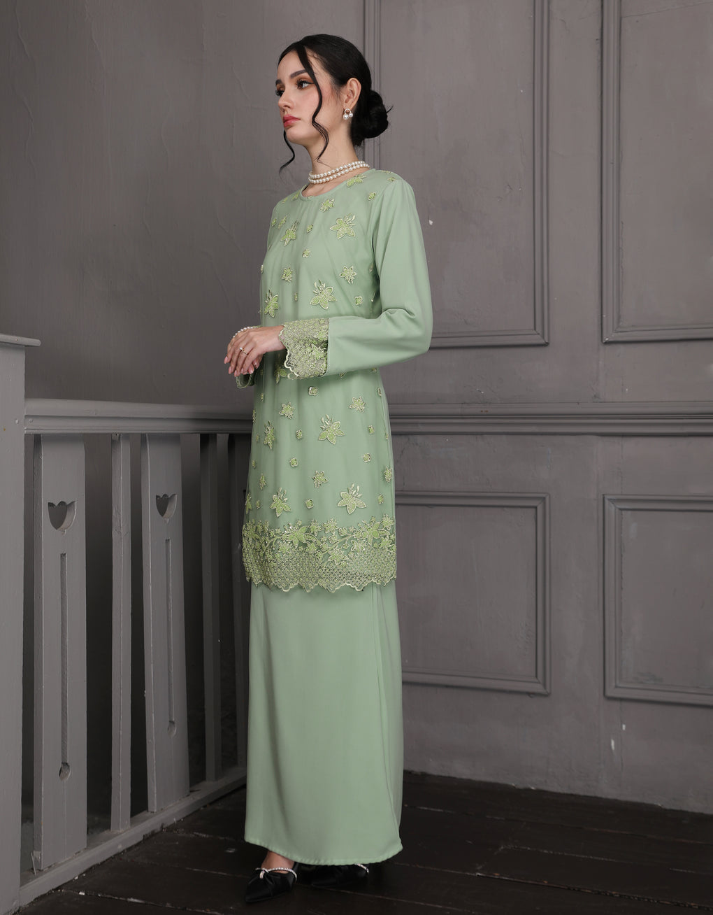 BAJU KURUNG MODEN ROWENA (MINT GREEN)