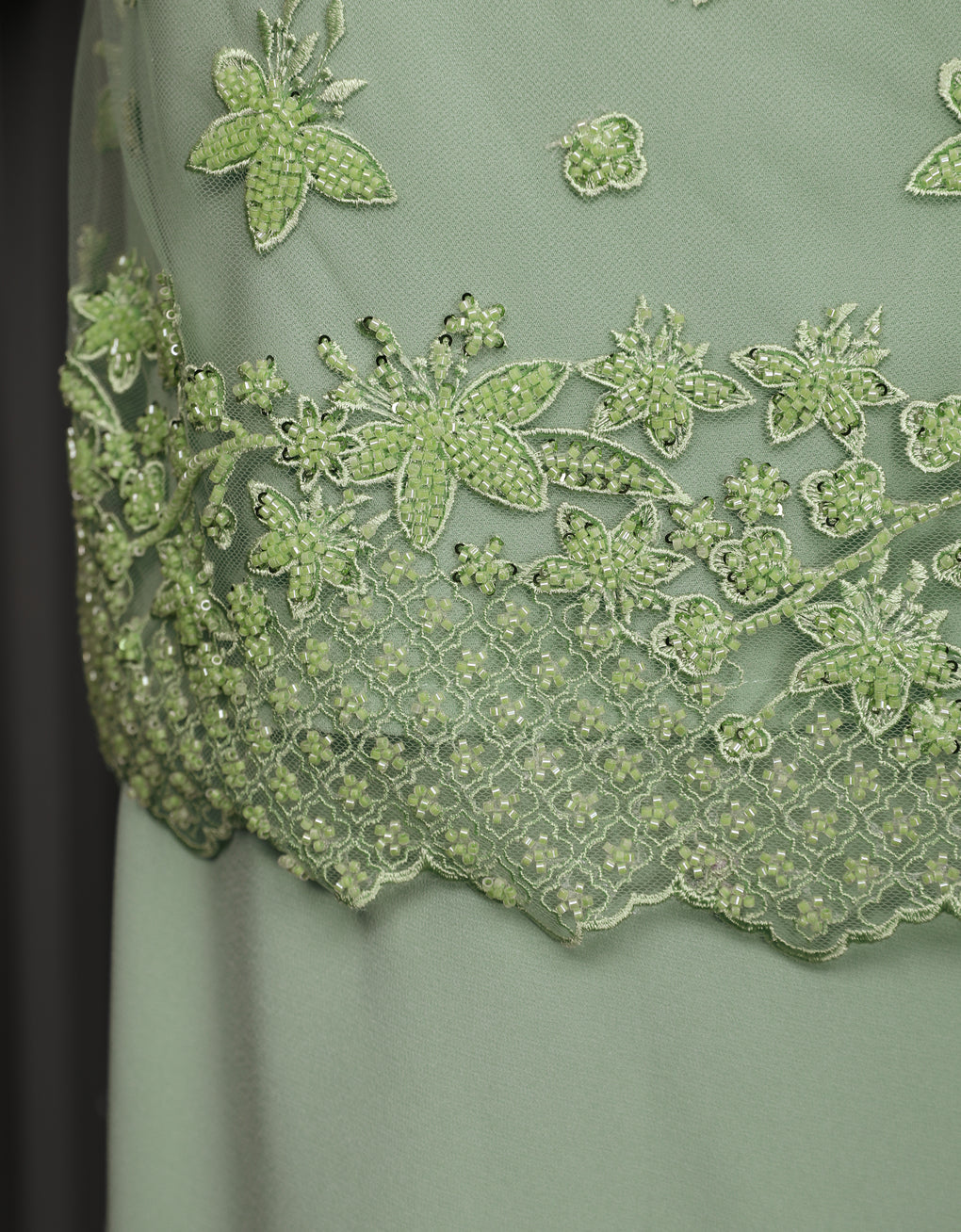 Baju Kurung Moden Rowena Luxurious and exclusive beaded lace delicately sewn for a rich and stunning look. The interlining are made of soft hand-feel jojo crepe fabric.