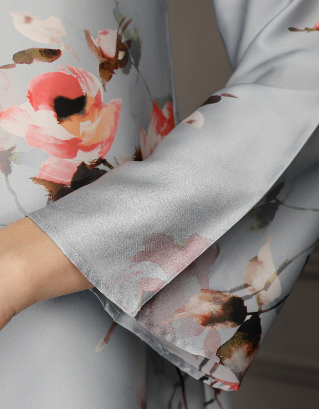 Material: Diore Silky Satin - The satin silk fabric boasts a glossy and elegant drape, featuring exclusive prints that add a touch of luster to the garment.