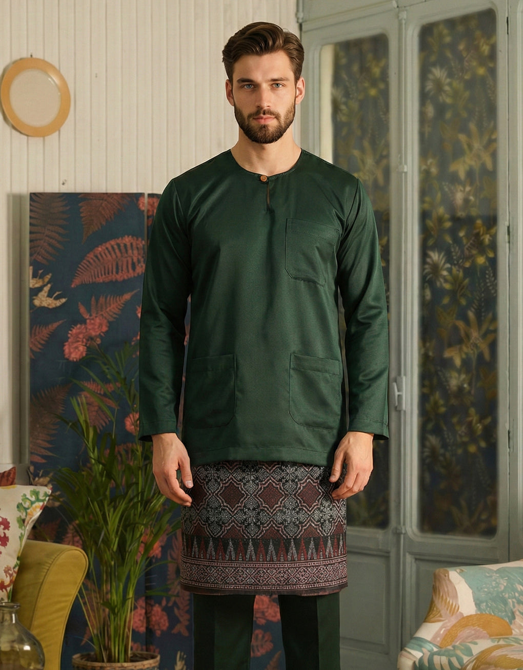 Material: Paloma Washable Silk version of the traditional Johor attire. Made with expert craftsmanship, this Paloma silk fabric ensures durability and comfort, perfect for formal occasions.