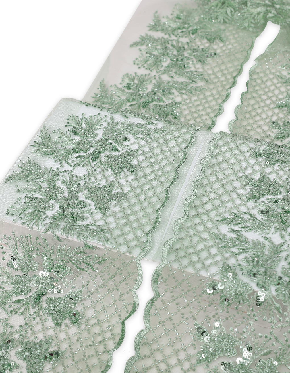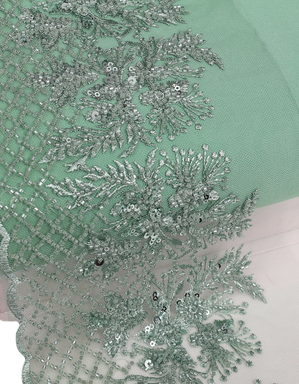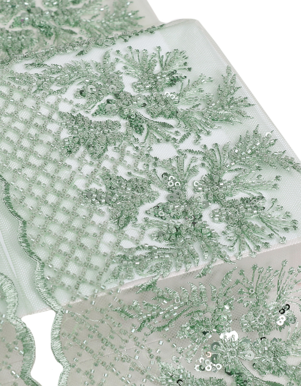 Beaded Border lace  is a fine fabrics that comes in floral and abstract pattern and also with minimalist sequins and beads. Giving the highest recognition for the exquisite vibe of femininity to the wearer. It also has a good drapability.