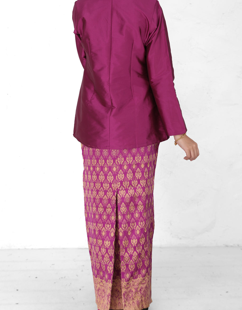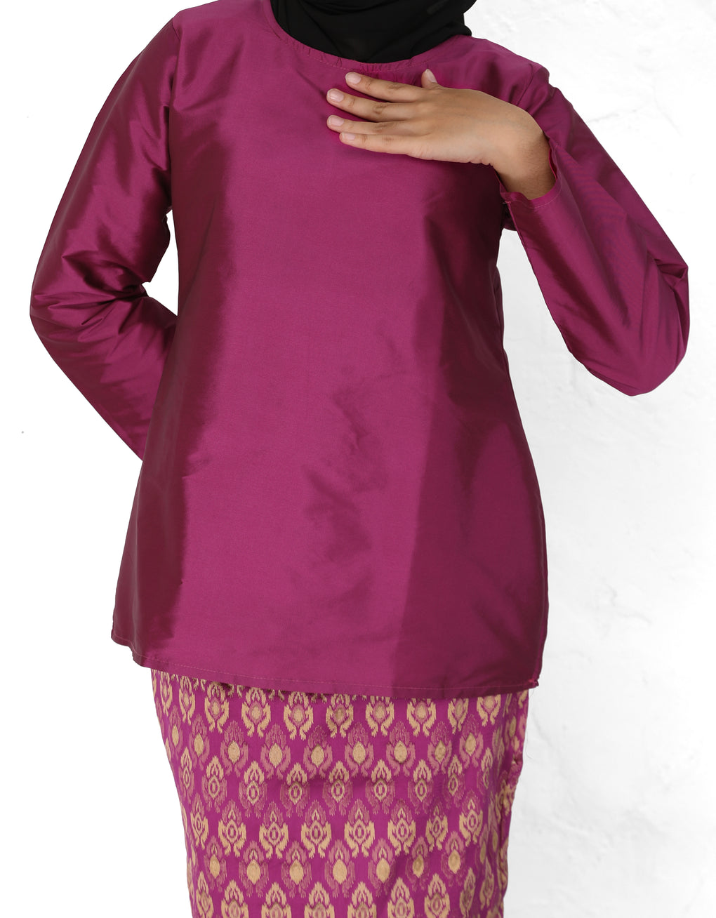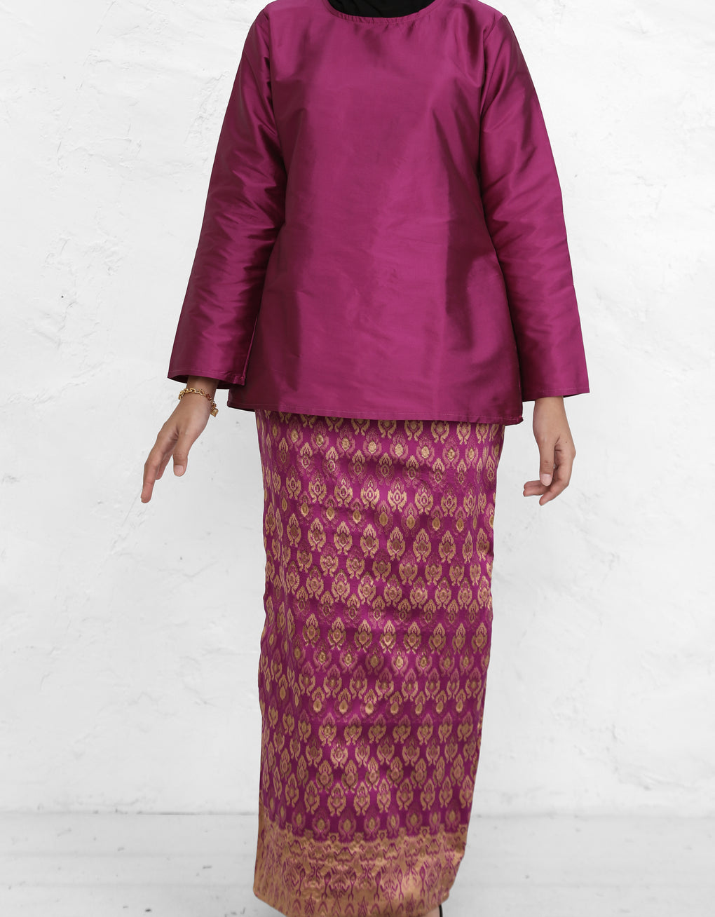 "Baju Kedah Teyja" blends timeless tradition with modern grace. Top Crafted from Tafetta and skirt from Jacquard. We serve you with four bolder colours options for this coming Raya. Pair it with either plain or printed scarves and you are good to go! It is a timeless piece which elevates our Karoline to look ultra feminine.