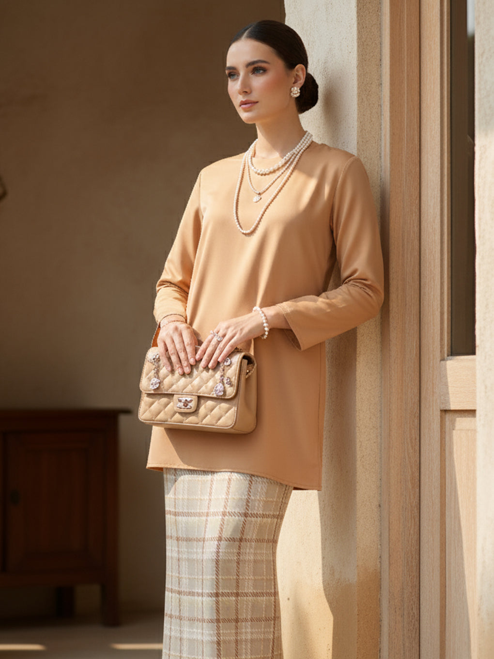 BAJU KURUNG MODEN KARINA (BROWN)