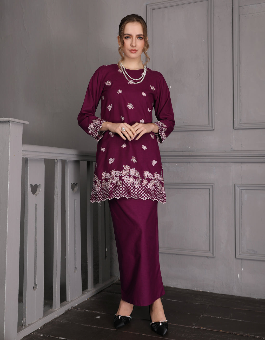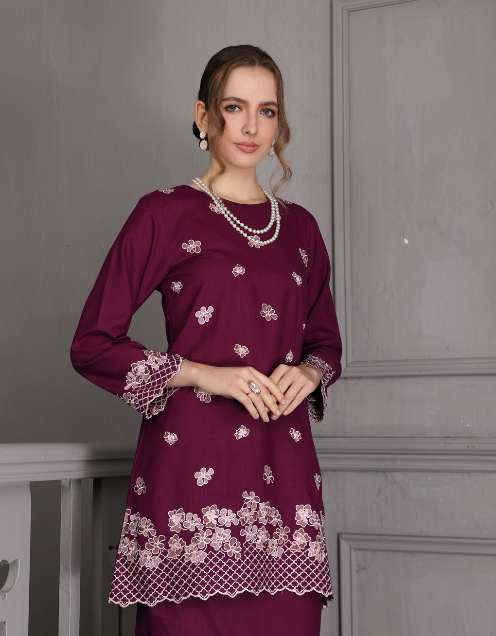 BAJU KURUNG PAHANG MODEN LETTIE (BURGUNDY)