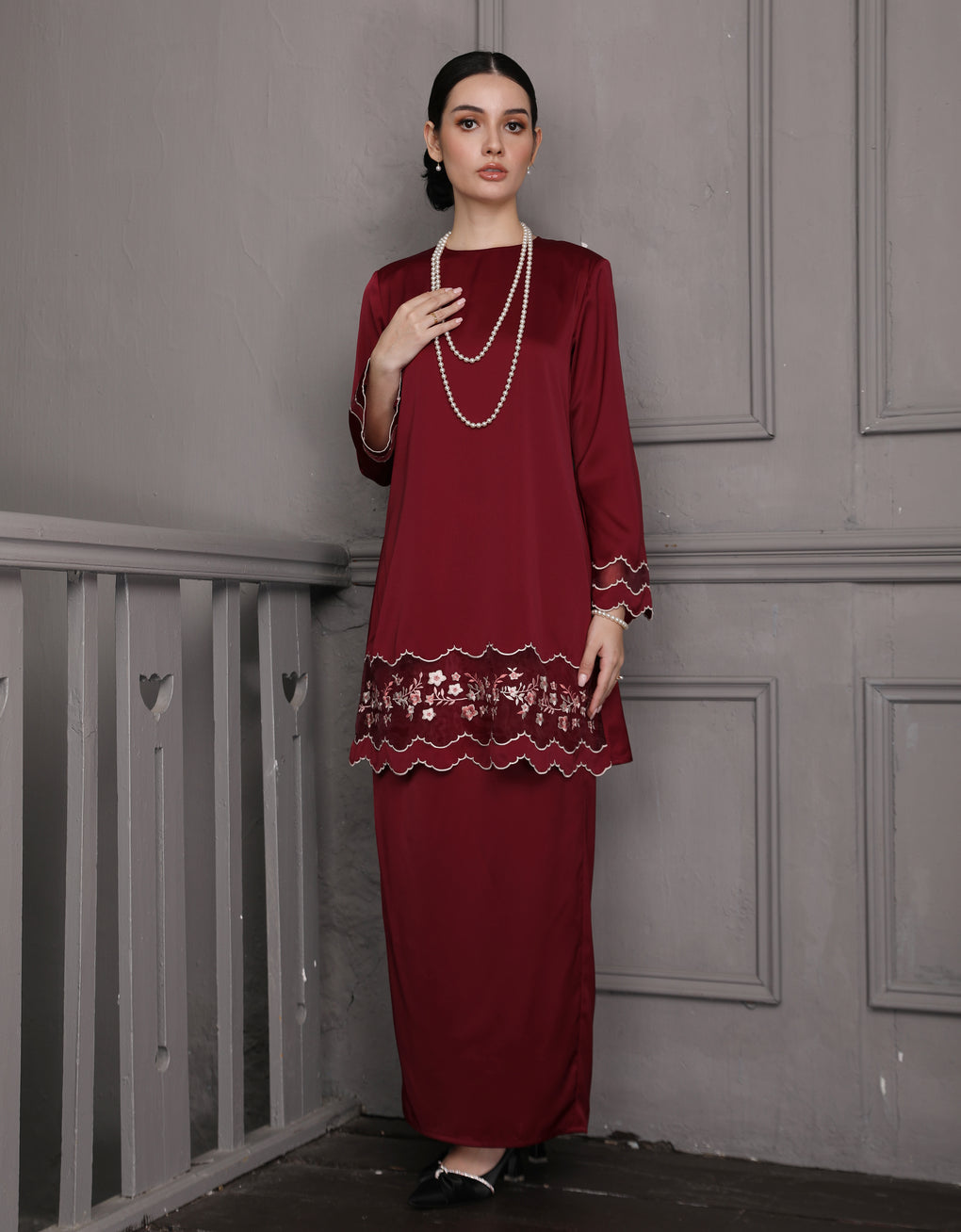 BAJU KURUNG PAHANG MODEN NERIA (MAROON)