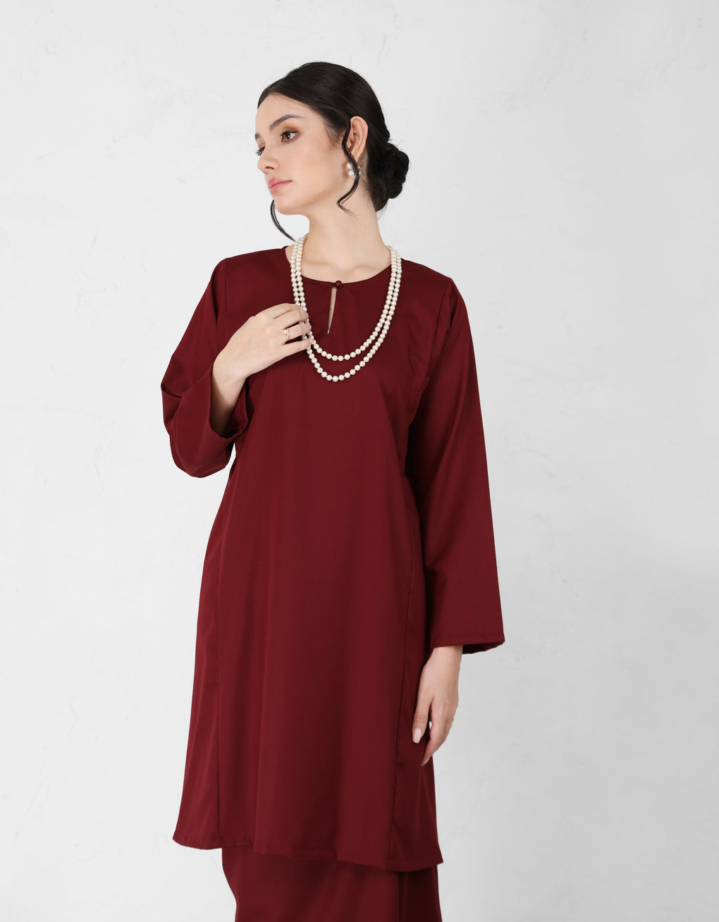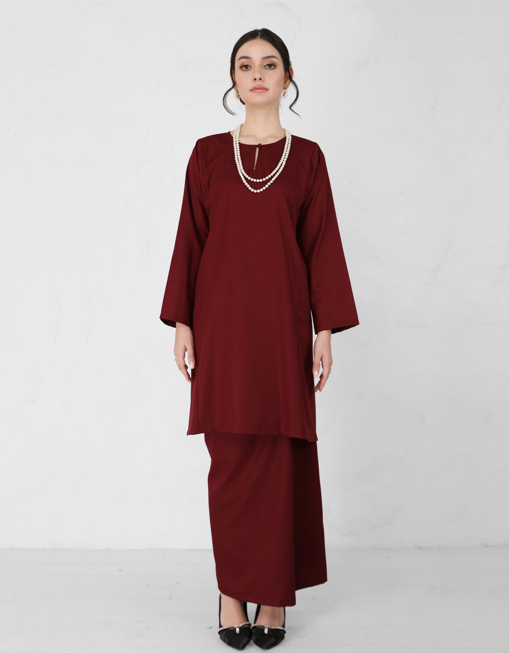 "Baju Kurung Pahang Pesak Nirmala" crafted with premium polycotton - attention to detail, its structured silhouette and elegant drape provide a flattering fit while maintaining cultural authenticity. This piece combines timeless design with expert tailoring to ensure comfort and style throughout the day.