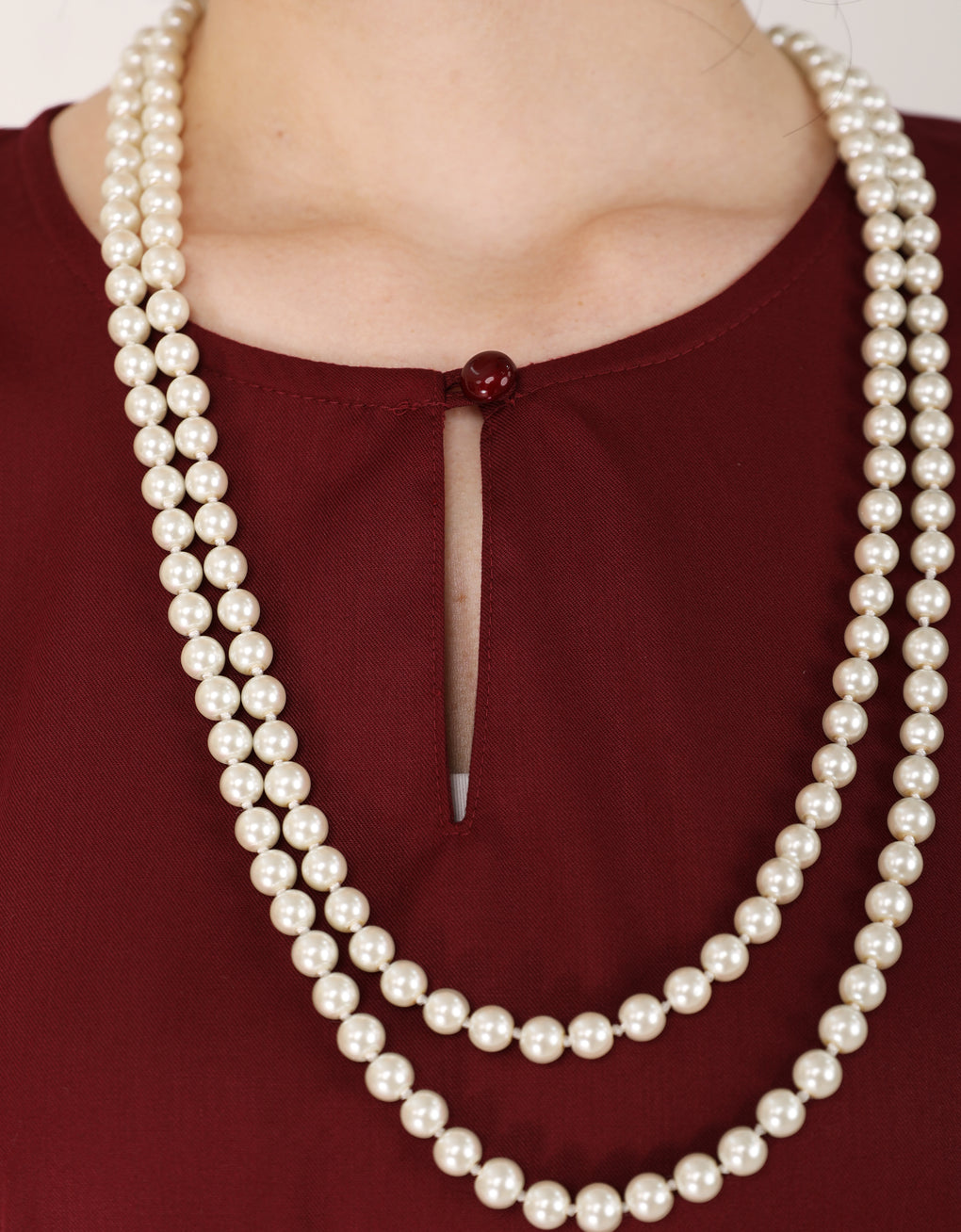 ✿ Notched round neck with button