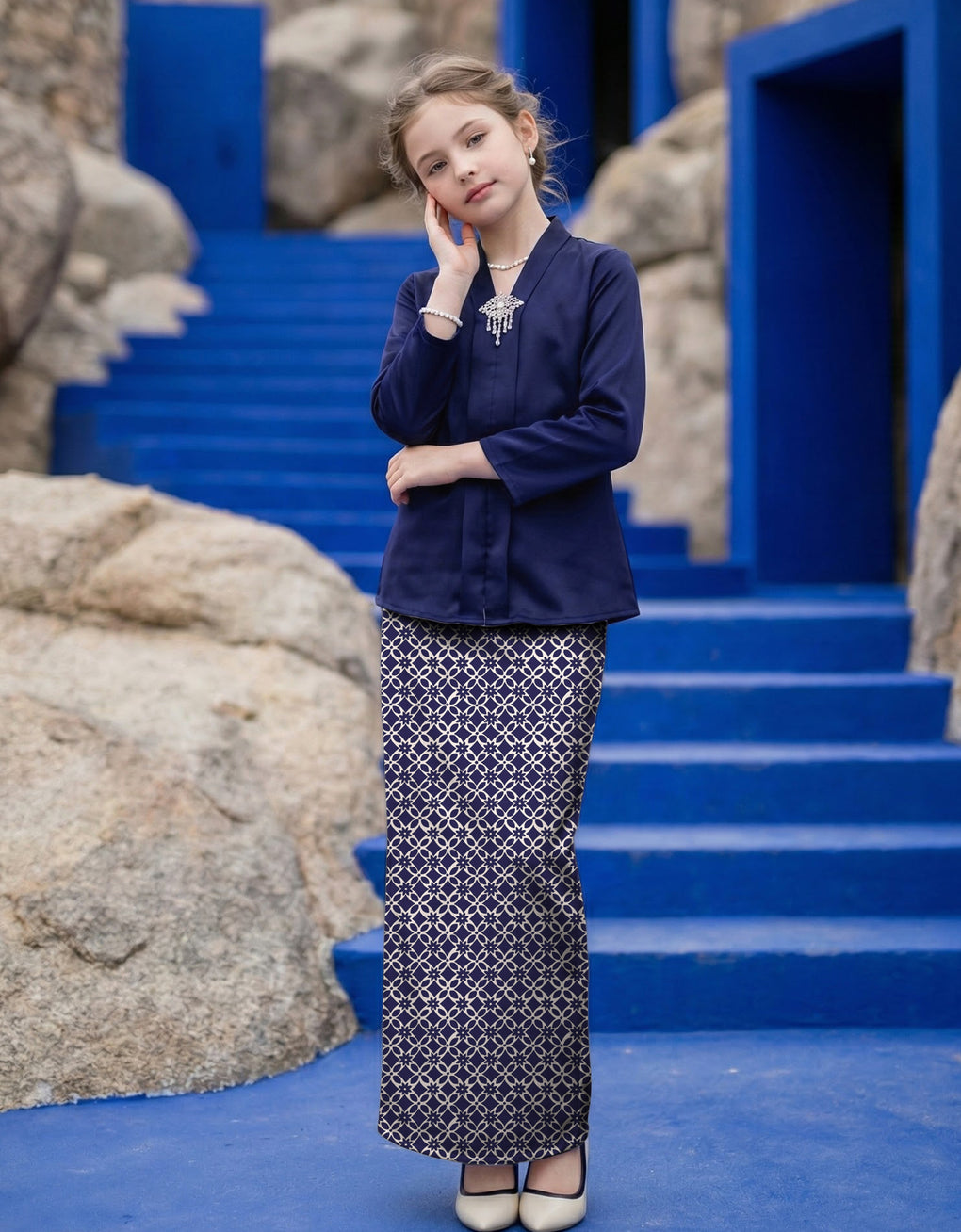 Introduce your daughter to timeless elegance with the Kids Baju Kebaya Melyra features a coordinated plain satin top paired with a beautifully printed satin skirt, designed for the modern family. The soft sage green hue complements all skin tones, while the premium satin fabric drapes gracefully for a polished appearance. Perfect for festive occasions, family portraits, or special celebrations, this mother-daughter ensemble creates a cohesive, sophisticated look. The quality construction ensures comfort throughout the day, making it an investment piece for memorable moments together.Size Guide: The model wears a size 8 and is 120 cm tall