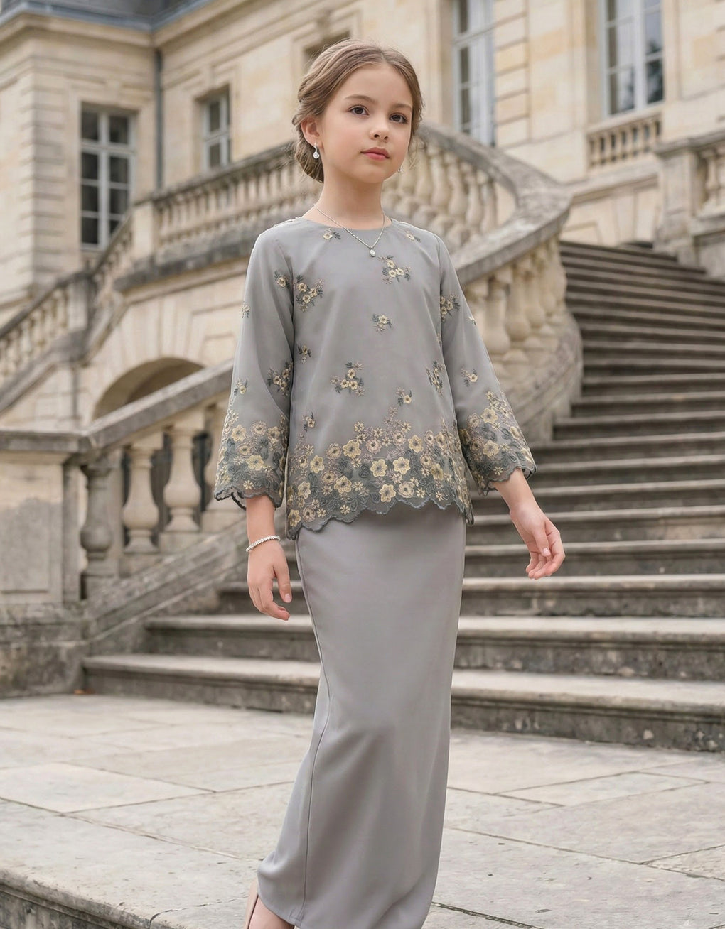 KIDS BAJU KURUNG KEDAH KAMILA (SILVER GREY)
