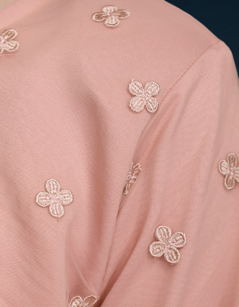 Crafted in a timeless Kedah cut, this piece ensures a comfortable fit for your little one. Delicate Floral Embroidered Lace and a subtly geometric hem create a graceful blend of femininity and elegance perfect for any occasion.