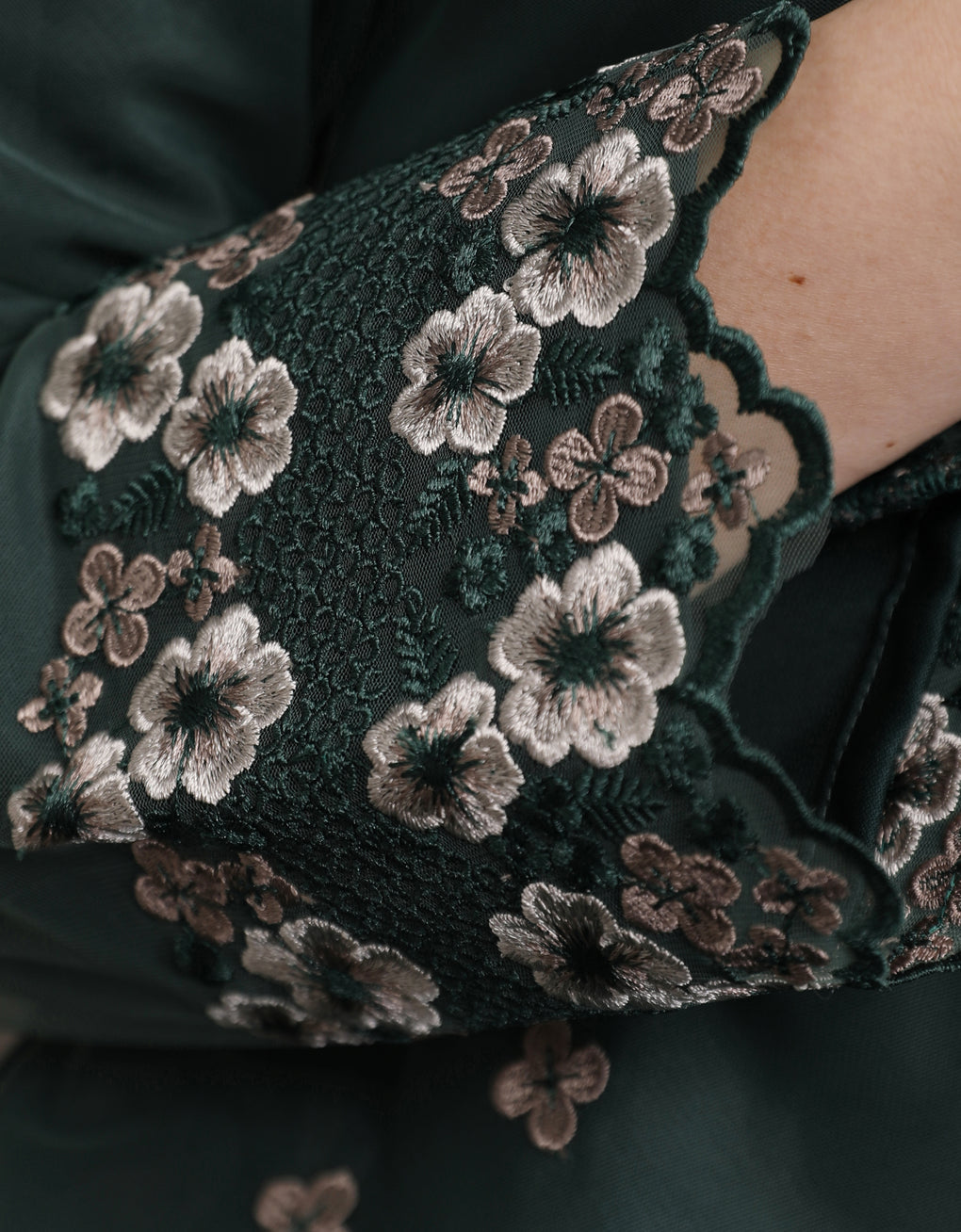 ✿ Finished with matching Floral Embroidered Lace at the the hem.
