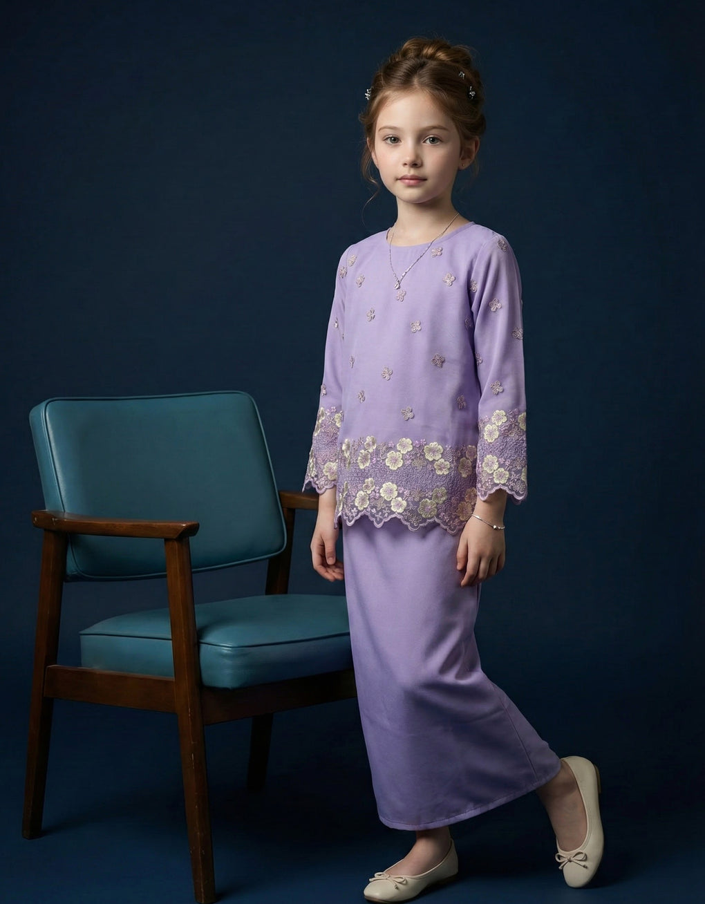 KIDS BAJU KURUNG KEDAH HAIFA (LILAC)