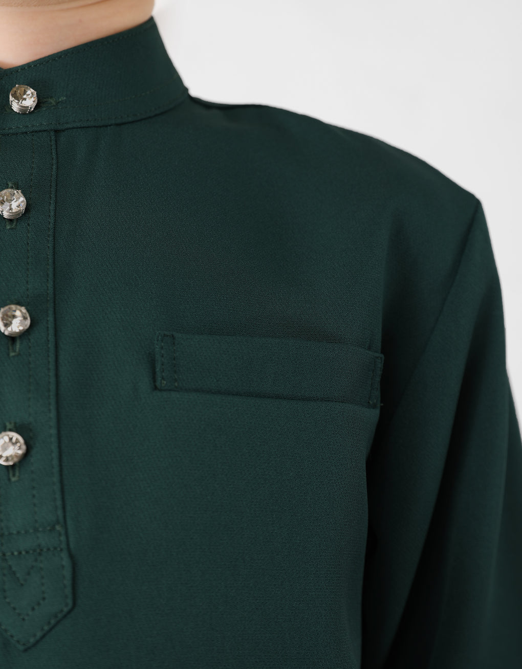 A Modern take on the classic Baju Melayu Cekak Musang - clean lines, tailored fit, and refined details for a sleek traditional look. Perfect for Raya, Wedding or formal events. This timeless piece blends heritage with cotemporary style.